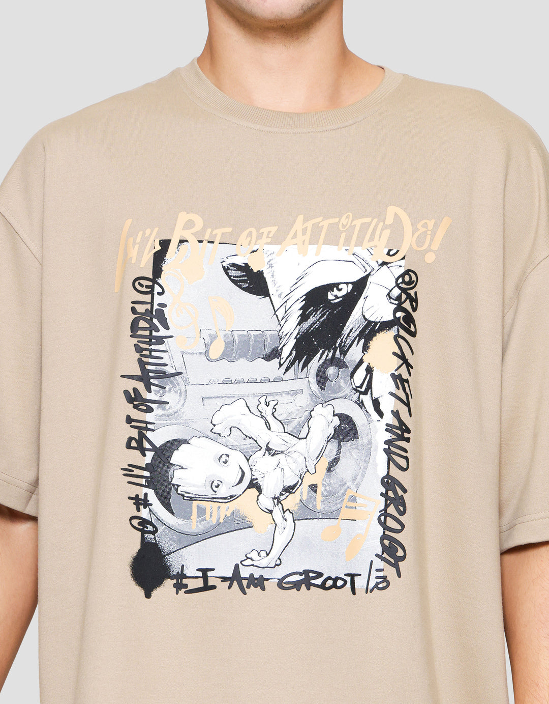 Marvel Rocket Raccoon Print Kaos Oversized Pria