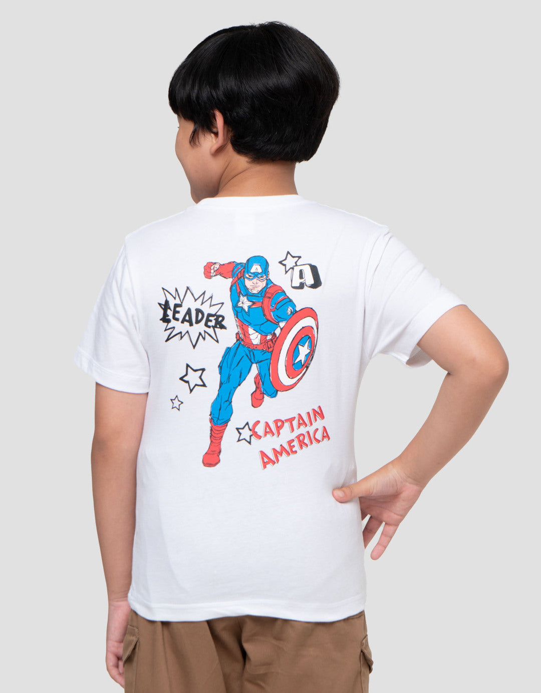 Jadikan si kecil tampil gagah dan percaya diri bak pahlawan super dengan Kaos Captain America Series. Menampilkan desain grafis eksklusif di bagian depan dan belakang yang eye-catching dan penuh semangat. Terbuat dari bahan katun (Cotton) berkualitas yang lembut, menyerap keringat, dan tidak panas—cocok untuk anak yang aktif bergerak.