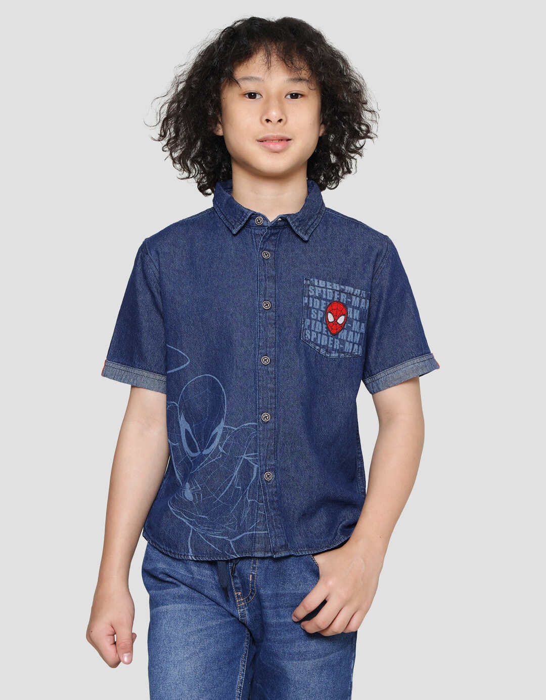 Marvel Spiderman Denim Laser Print Face Boys Shirt