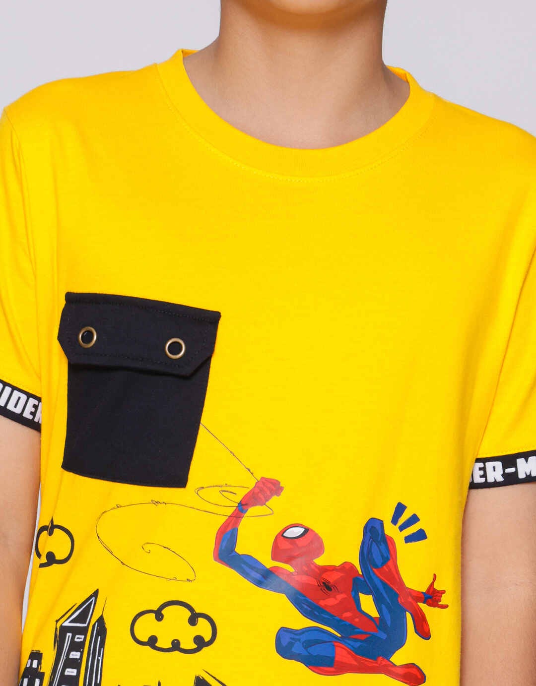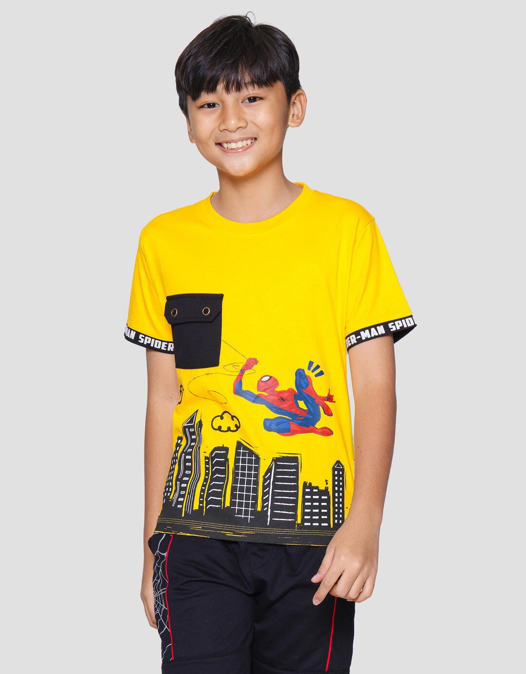 Marvel Spiderman Fly Building Boys Short Sleeve T-Shirt