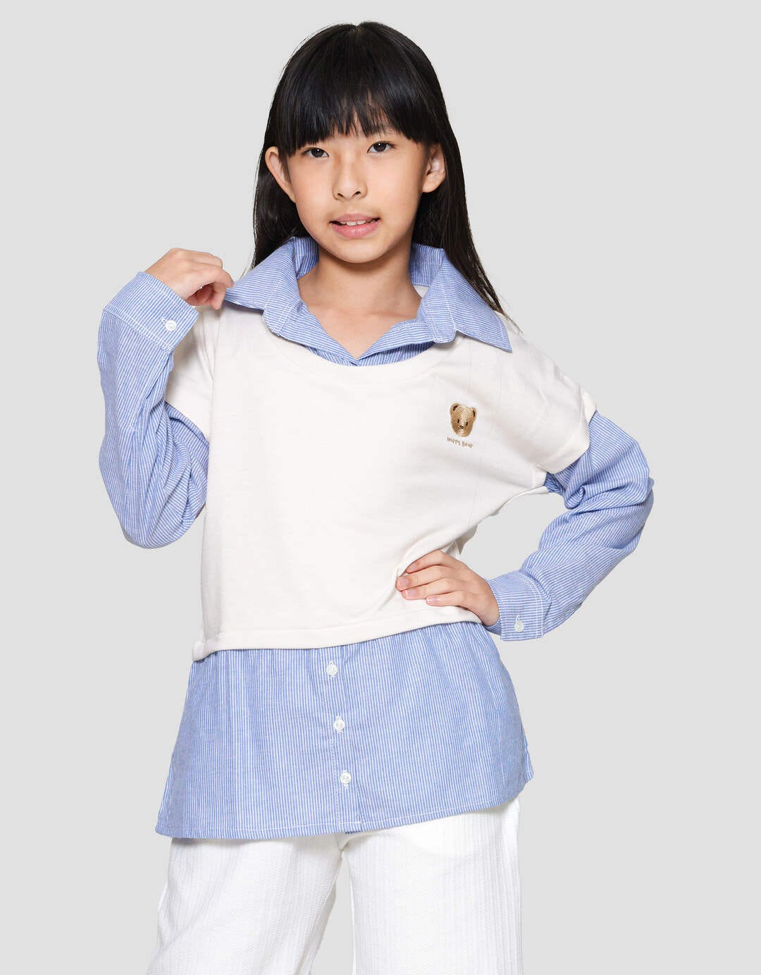 Nevada 2 Pcs Look Alike Contrast Knit Girls Shirt