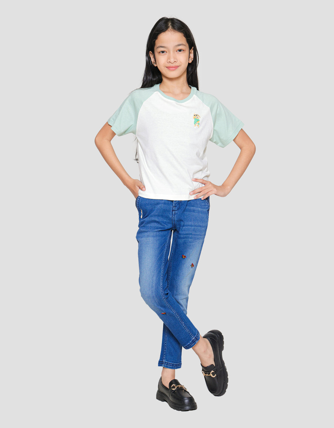 Girls' T-shirts to make your little one's appearance more charming. With a casual and simple model, suitable to be combined with various bottoms that children like. With simple print details and quality materials, it will be comfortable to wear all day long.