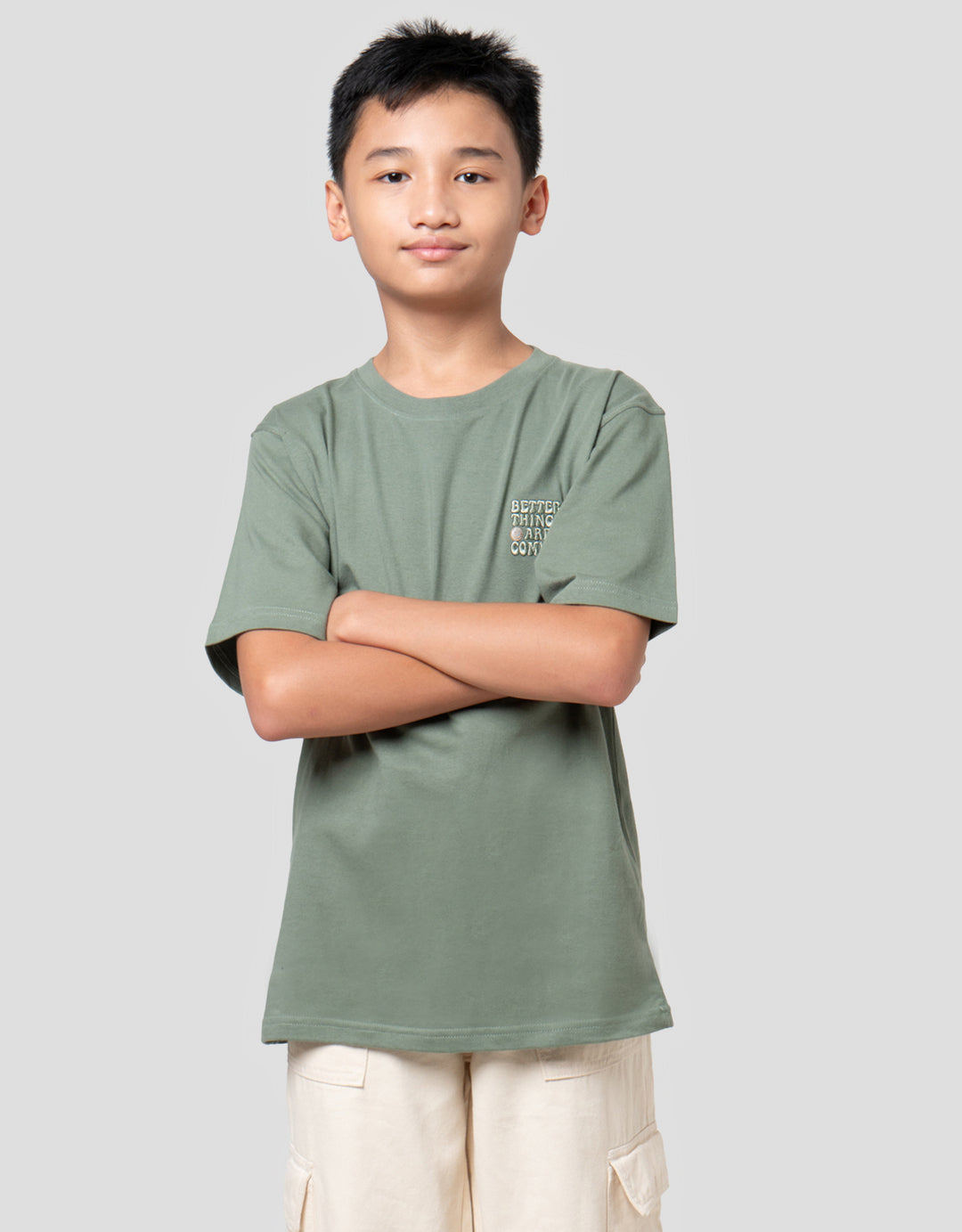 Kaos casual untuk anak-anak dengan model simple dan bahan berkualitas, akan menjadi outfit kesukaan Anak saat berada di rumah pada moment santai mereka.