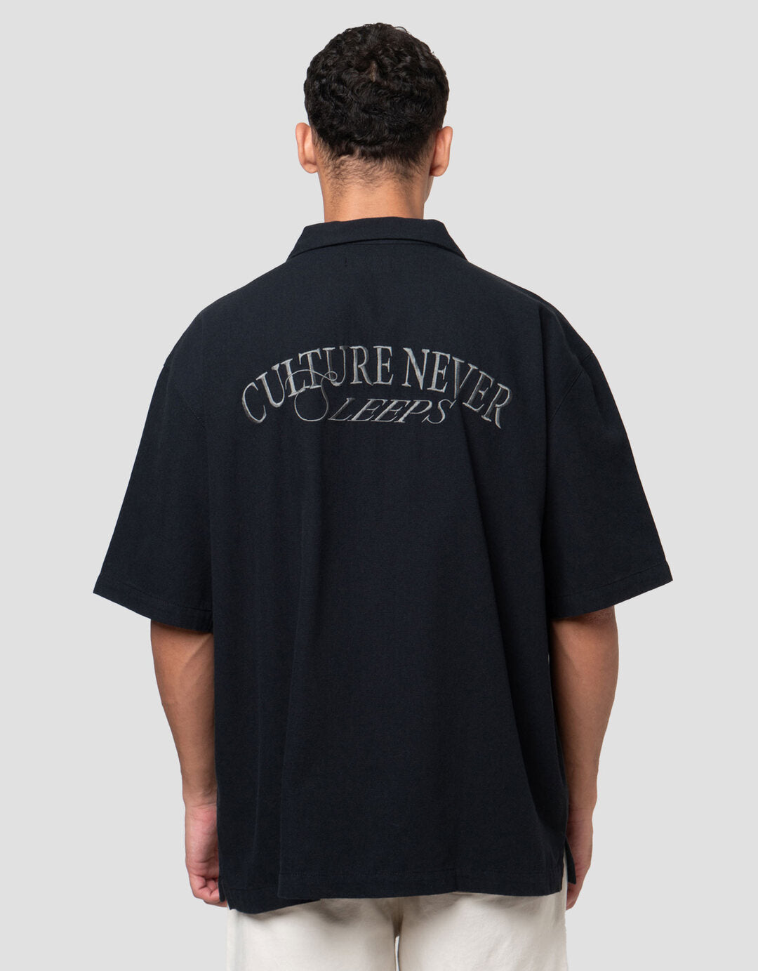 Nevada Boxy Fit Camp Collar With Bordir Style Kemeja Pria