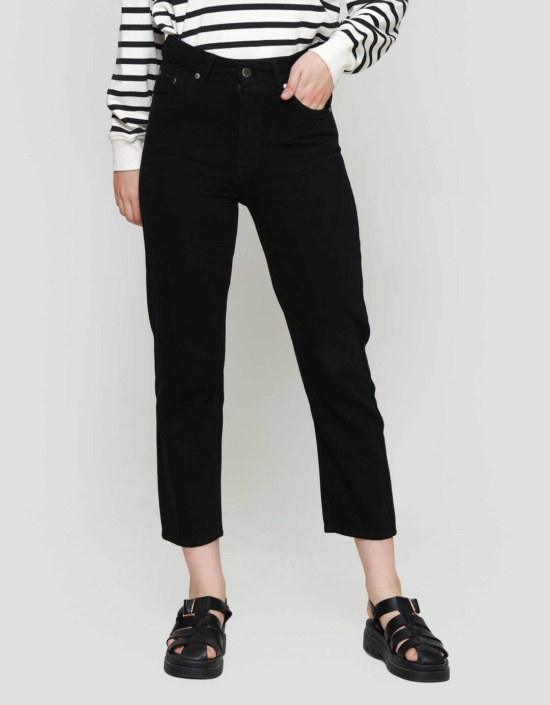Celana denim wanita dengan model mom fit cocok untuk dipadankan dengan atasan kesukaan Anda untuk beraktifitas sehari-hari.
