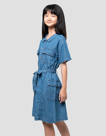Nevada Denim Kantong Kargo Dress Anak Perempuan