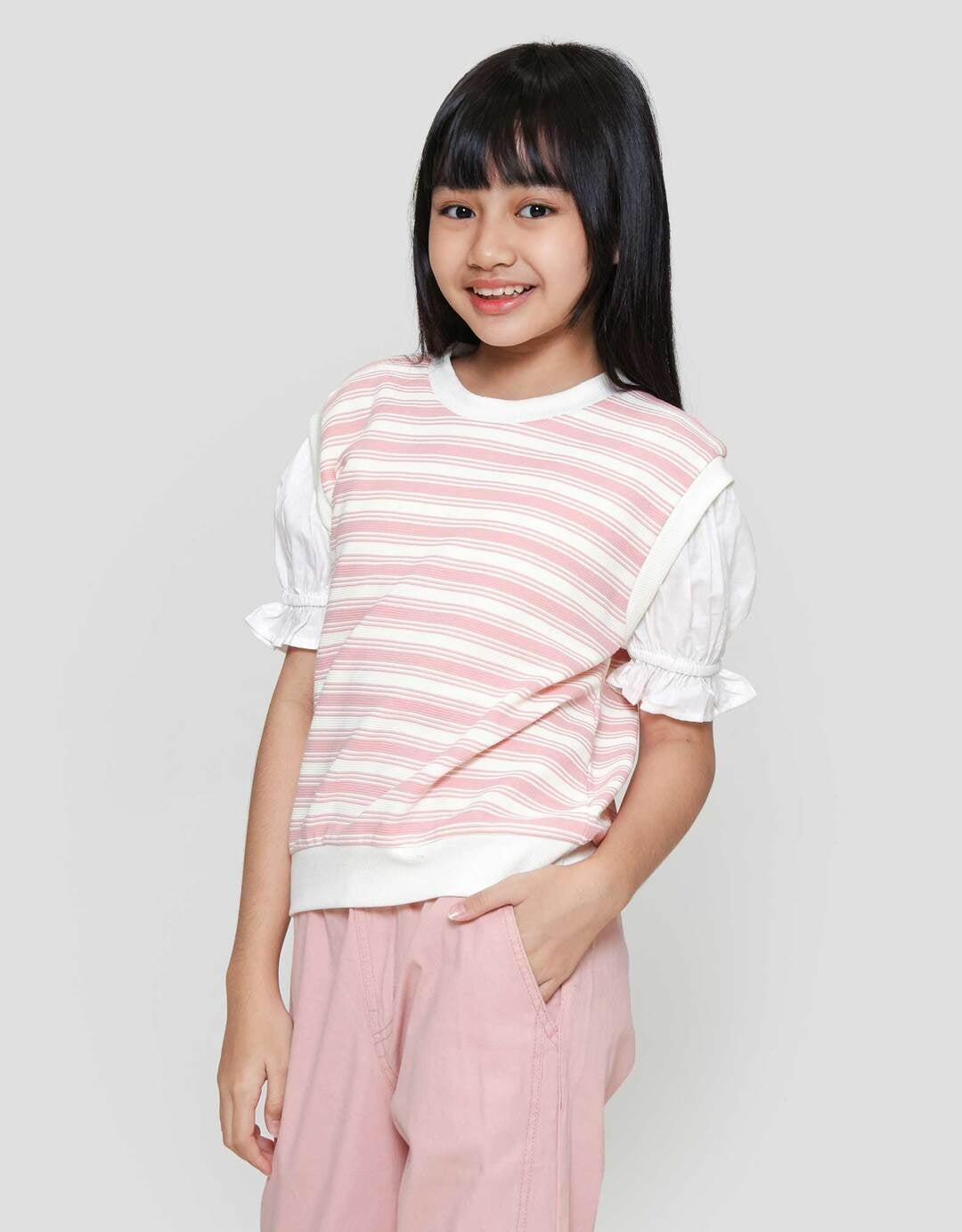 Nevada Garis 3 Komb Woven Kaos Anak Perempuan