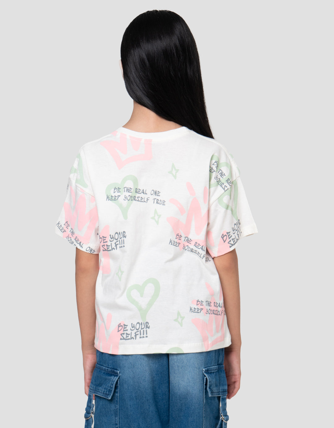 Kaos anak perempuan dengan model yang simple dan casual, cocok untuk dijadikan outifit keseharian saat anak beraktifitas. Bahan yang berkualitas akan nyaman saat digunakan sepanjang hari.