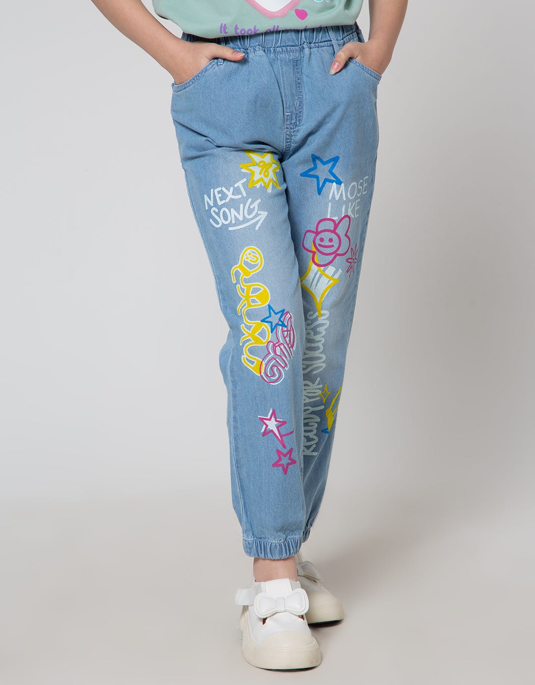 Nevada Jogger Pants Floral Graffiti Print Denim