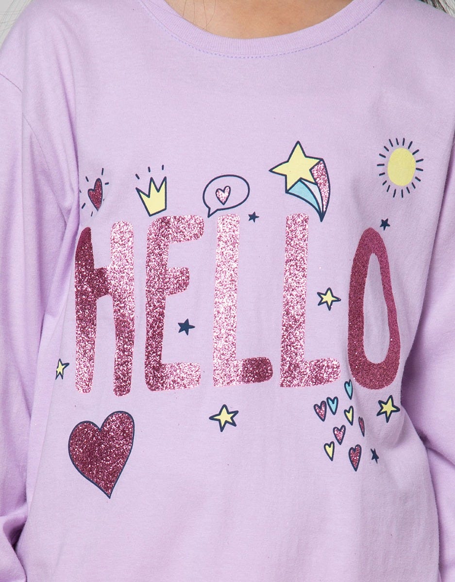 Nevada Kids Long Sleeve T-Shirt Hello Glitter Pink