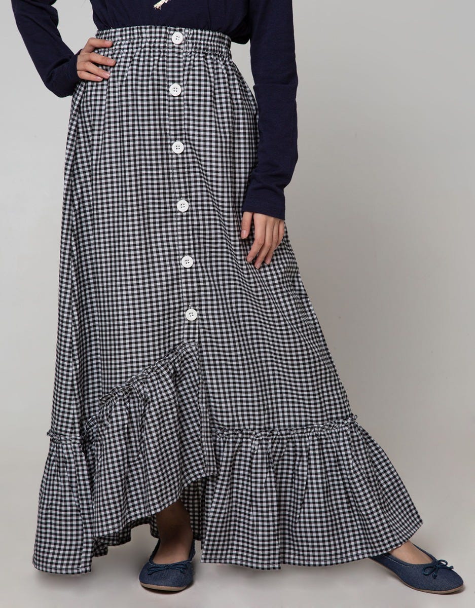 Nevada Kids Maxi Skirt Print Check Unbalance Ruffles