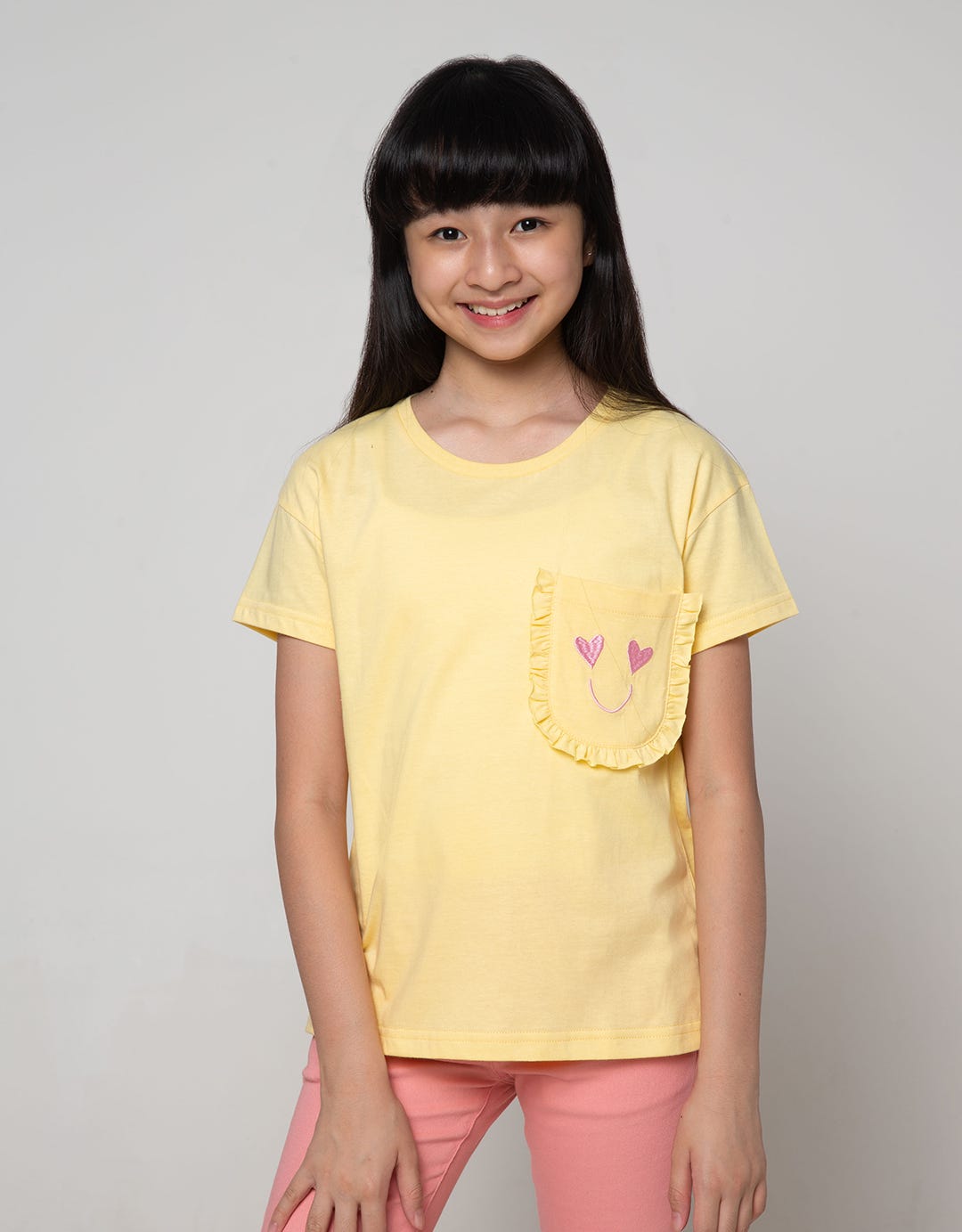 Nevada Kids Short Sleeve T-Shirt Ruffle Pocket Embroidered Emoji Love