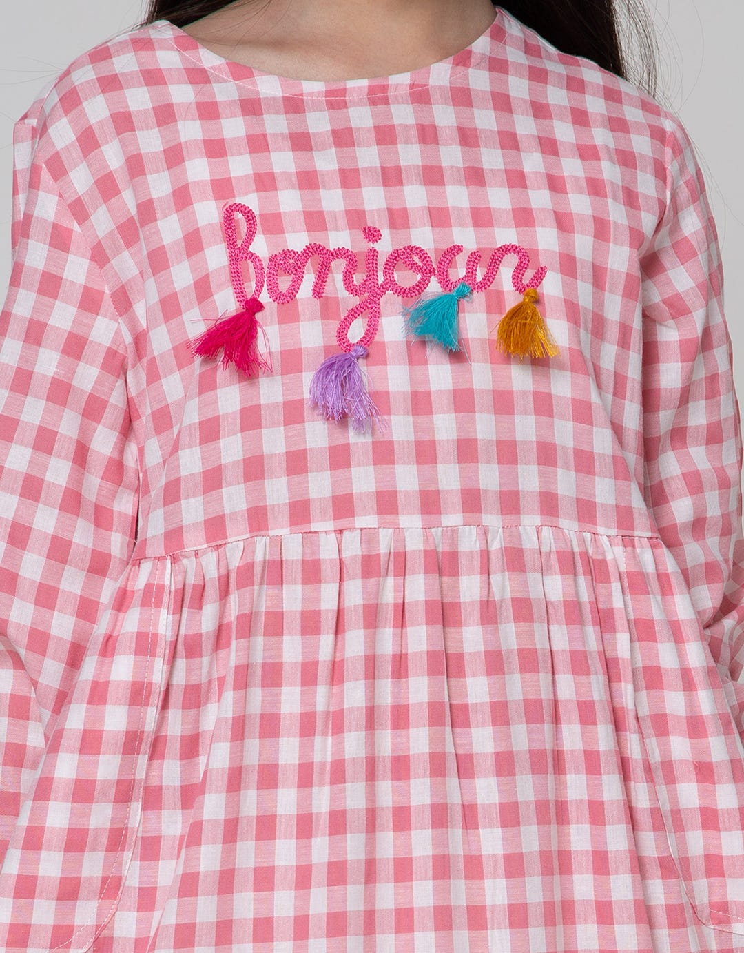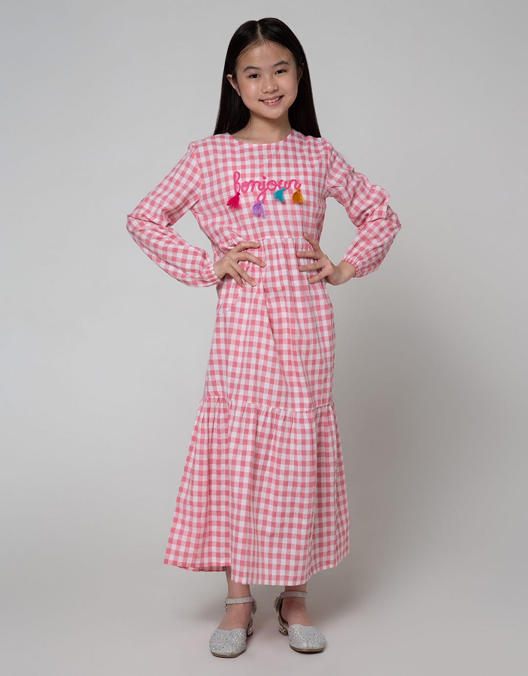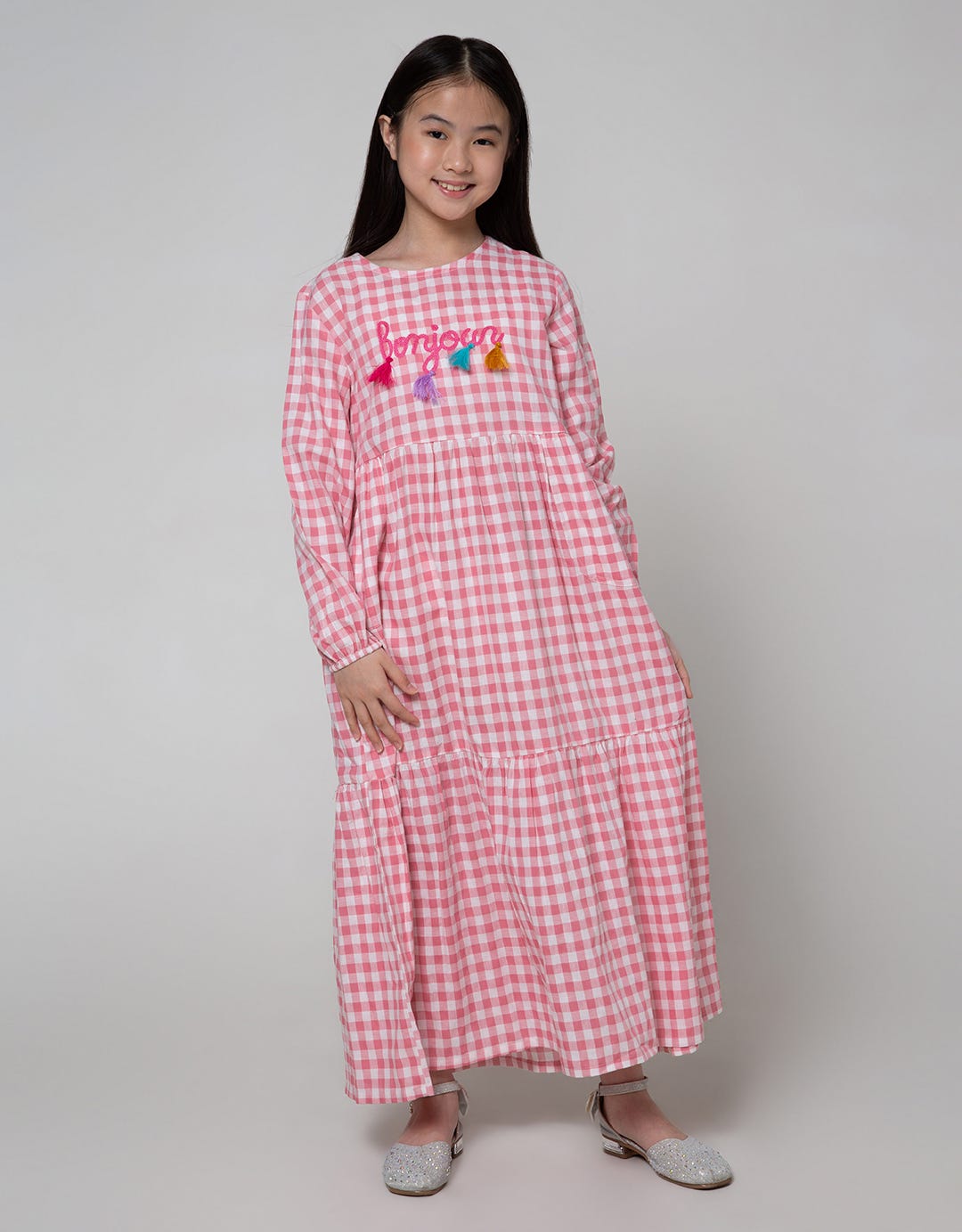 Nevada Long Sleeve Midi Dress Maxi Stacking Print Gingham Bonjour With