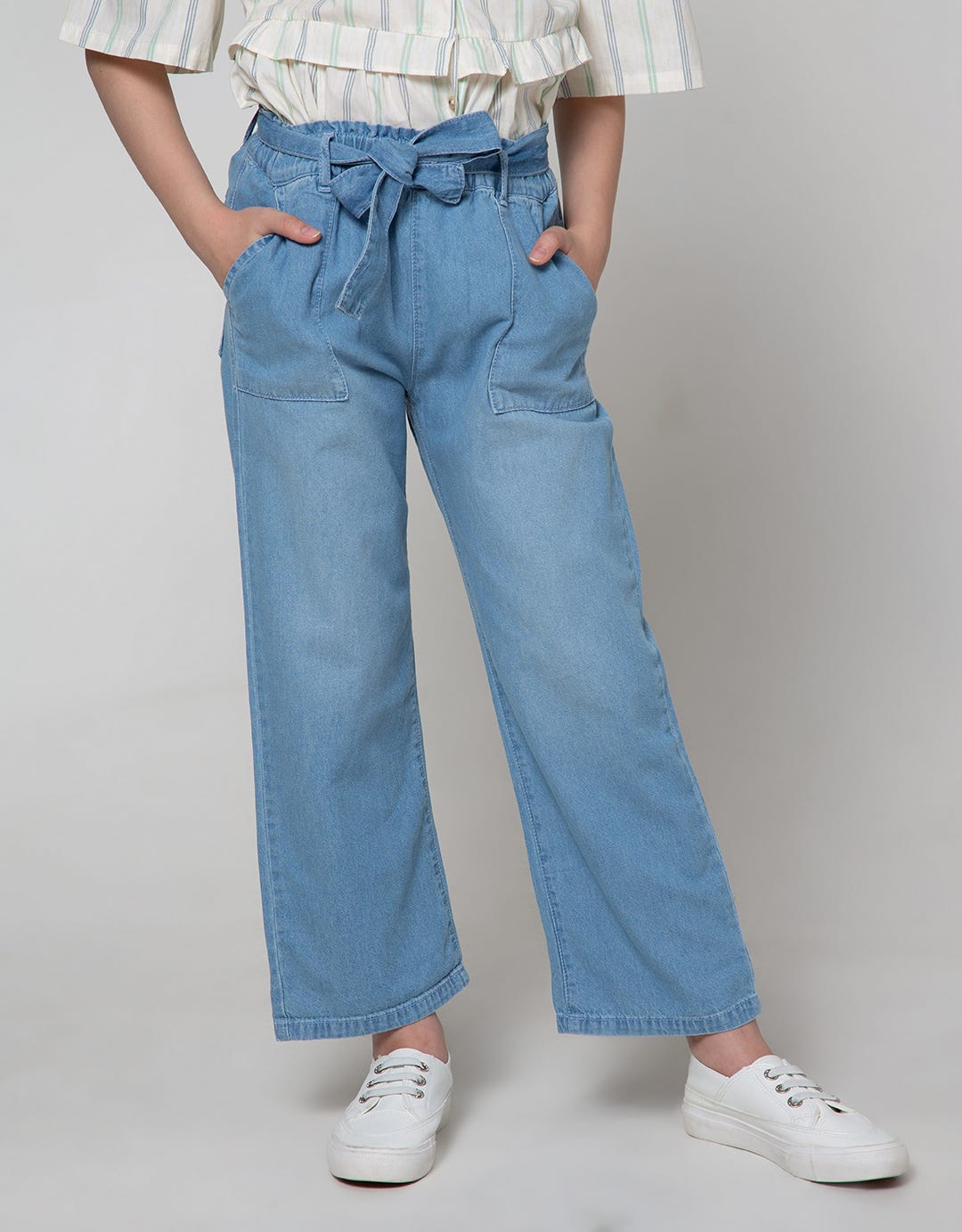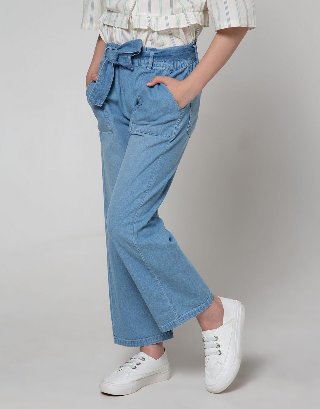 Nevada Wide Leg Denim Pants With Paperbag