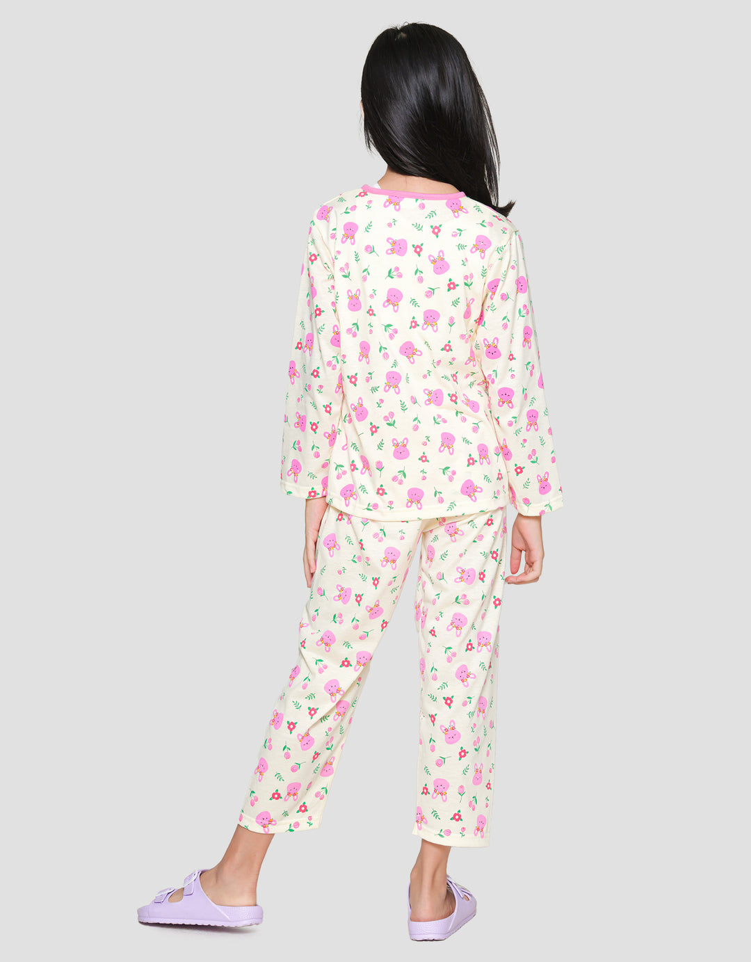 Nevada Print Bunny Flower Pajamas Set for Girls