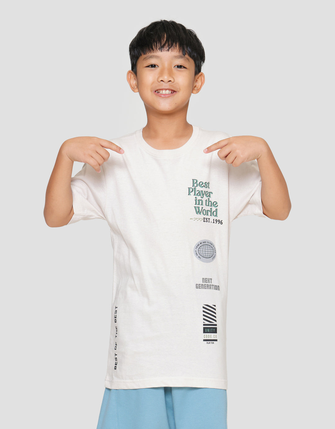 Boys' t-shirts with simple and casual designs, suitable for children to wear on their precious moments to support their appearance to be more charming. The simple model is easy to match with their favorite bottoms and makes them comfortable in their daily activities.
