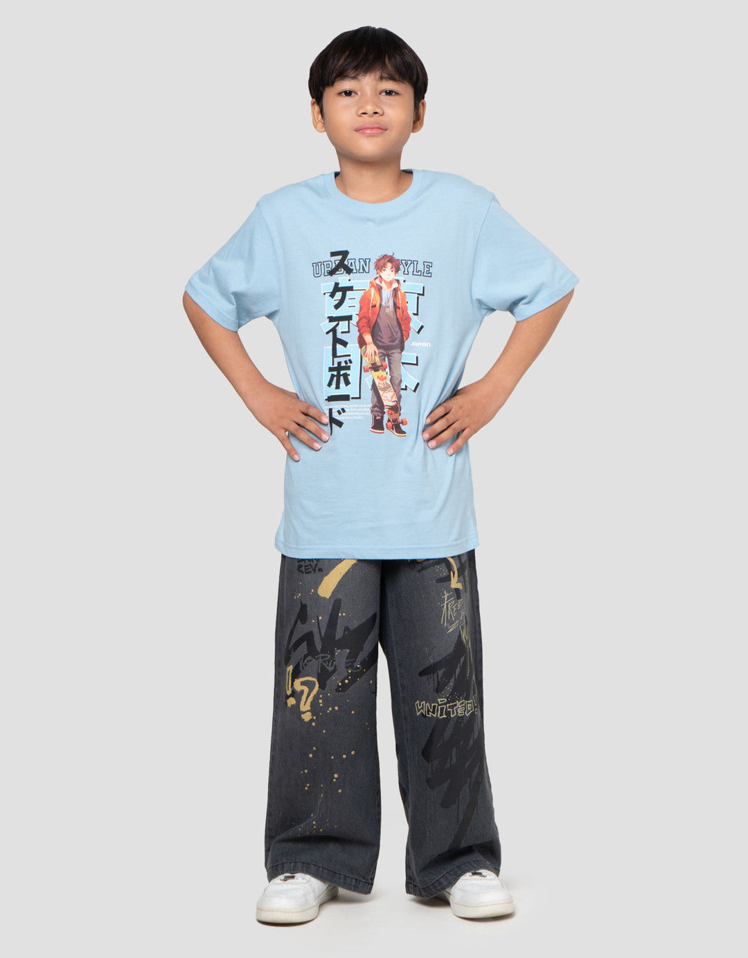 Nevada Print Skate Anime Kanji Kaos Anak Laki-laki
