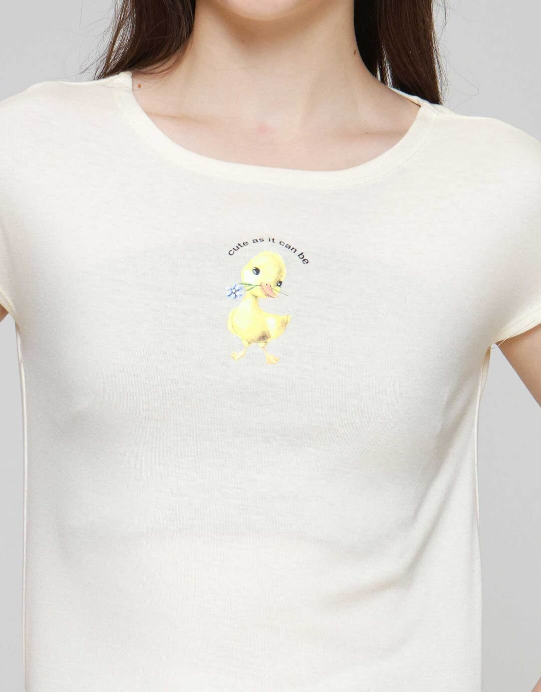 Nevada Solid Rib Cute Duck Kaos Lengan Pendek Wanita