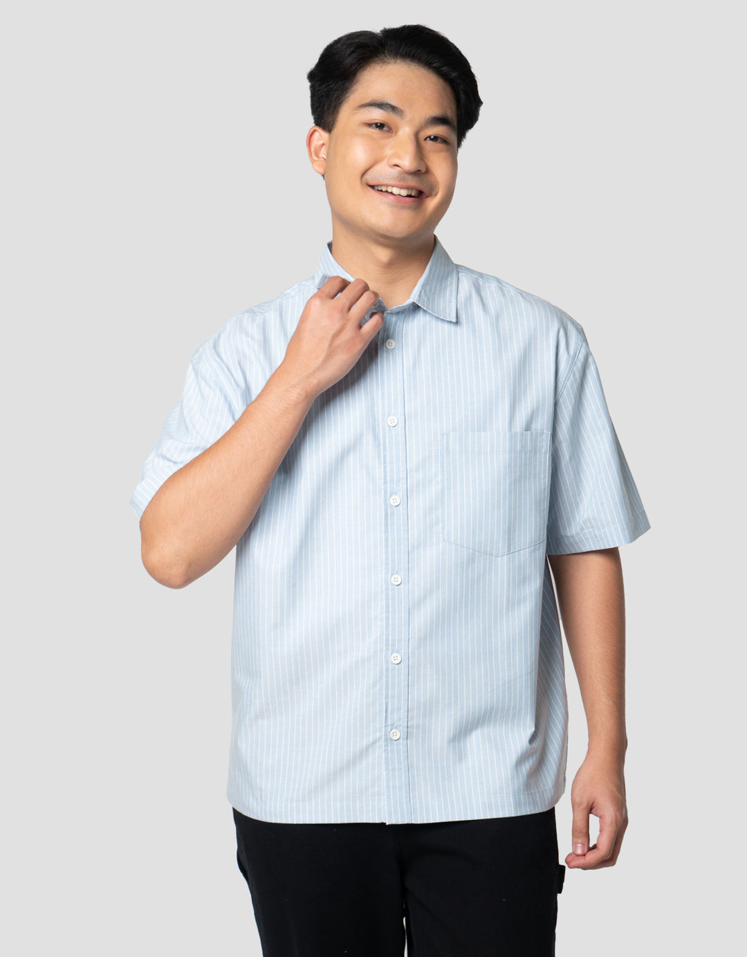 Nevada Stripe Embro Reg Collar - Boxy Fit Kemeja Pria