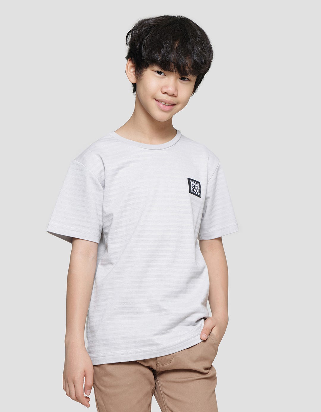 Boys' t-shirts with simple and casual designs, suitable for children to wear on their precious moments to support their appearance to be more charming. The simple model is easy to match with their favorite bottoms and makes them comfortable in their daily activities.