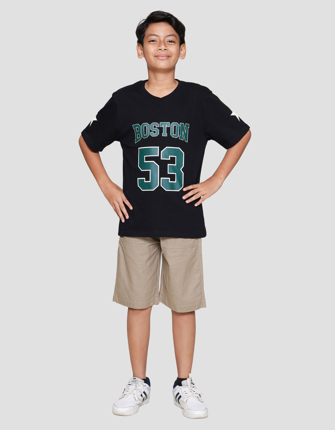 Nevada V Neck Varsity Two Sided Print Boston Kaos Anak Laki-laki