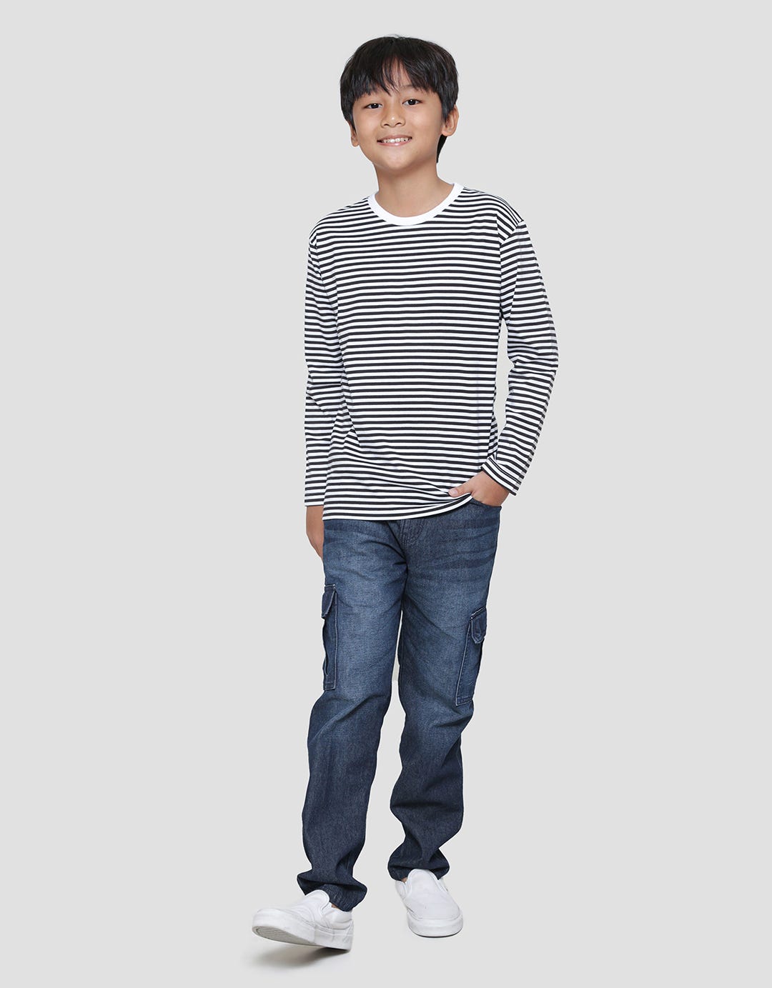 Boys' t-shirts with simple and casual designs, suitable for children to wear on their precious moments to support their appearance to be more charming. The simple model is easy to match with their favorite bottoms and makes them comfortable in their daily activities.