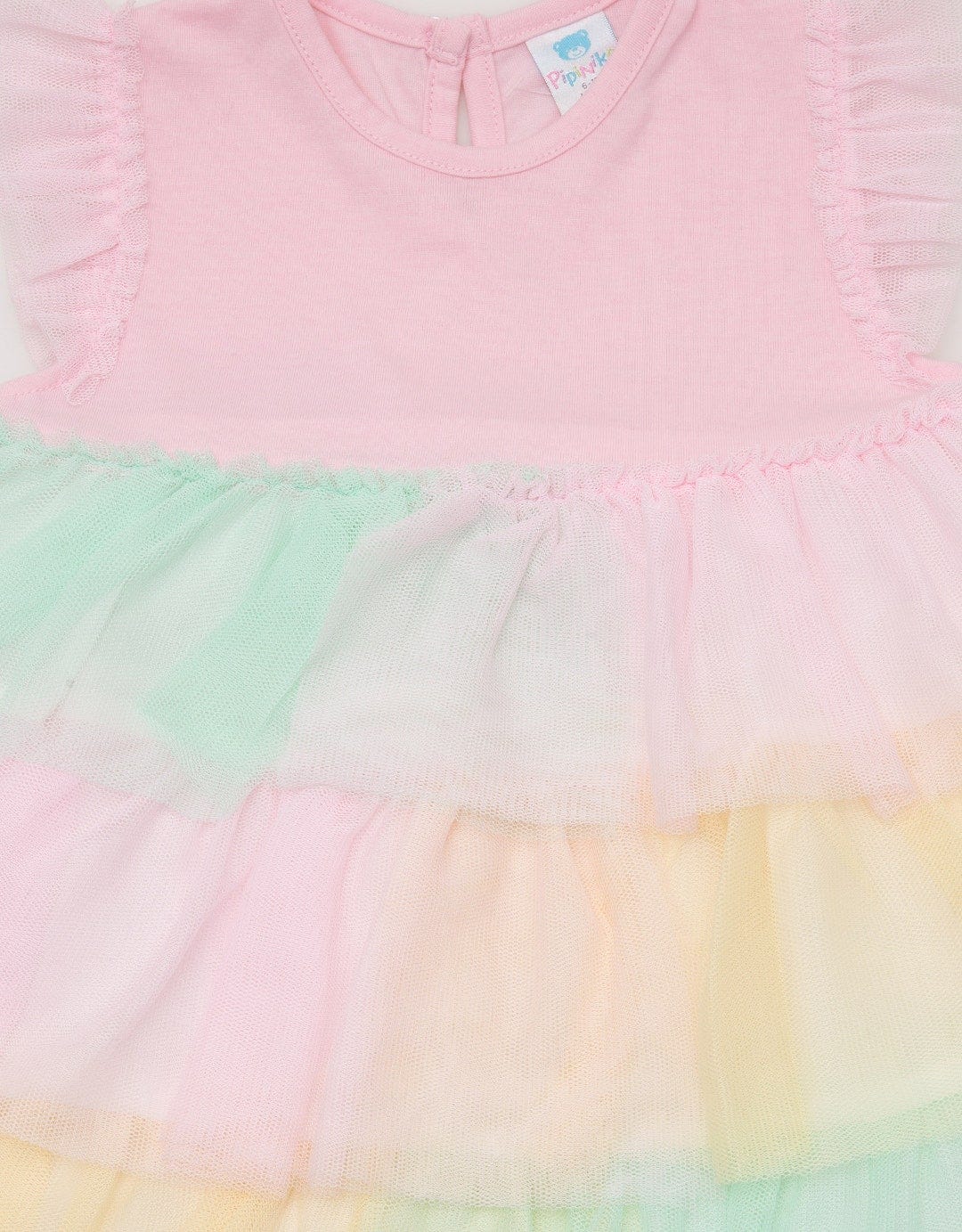 Pipiniko Short Sleeve Midi Dress Rainbow Ruffle Dress