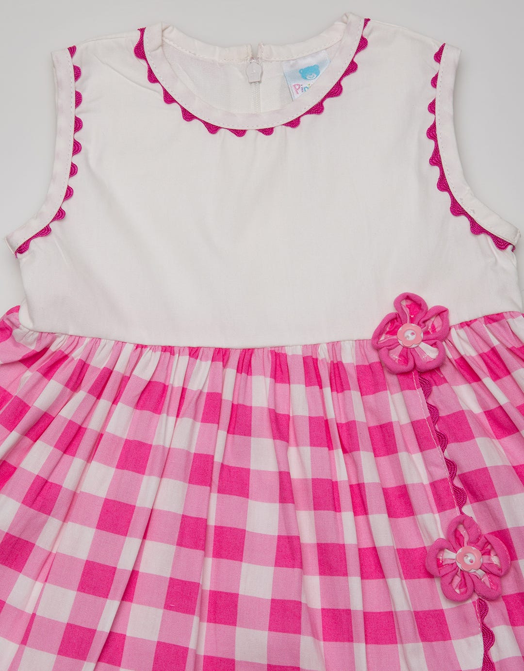 Pipiniko Short Sleeve Midi Dress 3 Button Floral Check