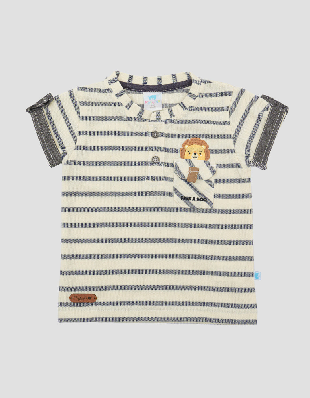 Pipiniko Stripe Lion Kantong Kaos Lengan Pendek Anak Laki-laki