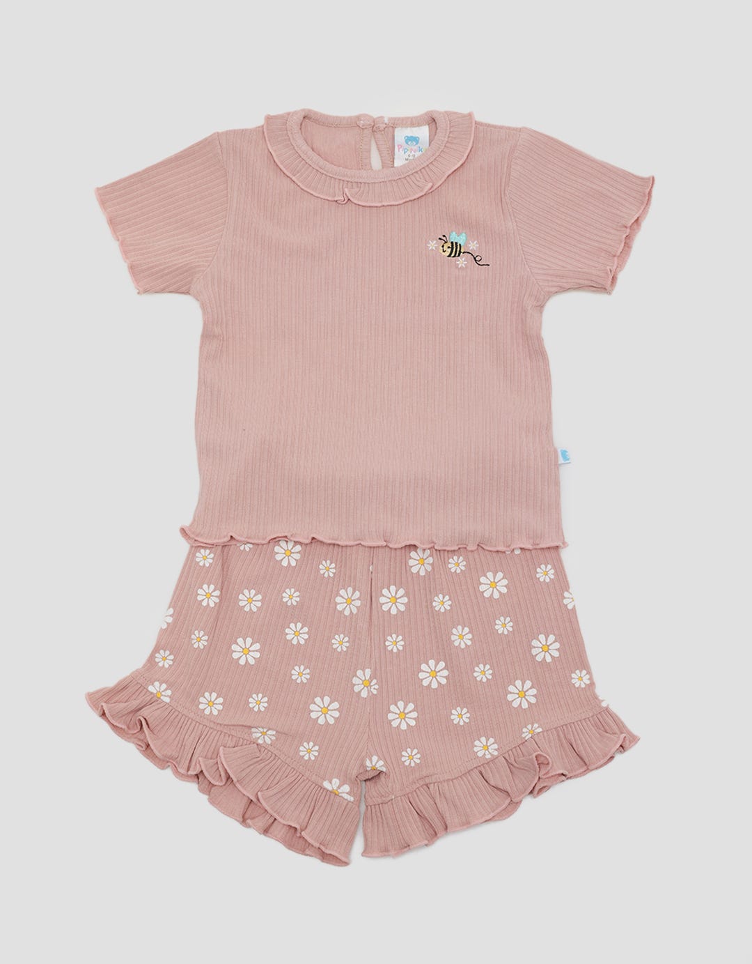 Pipiniko Top-Bottom Set Ribbed Short Bee