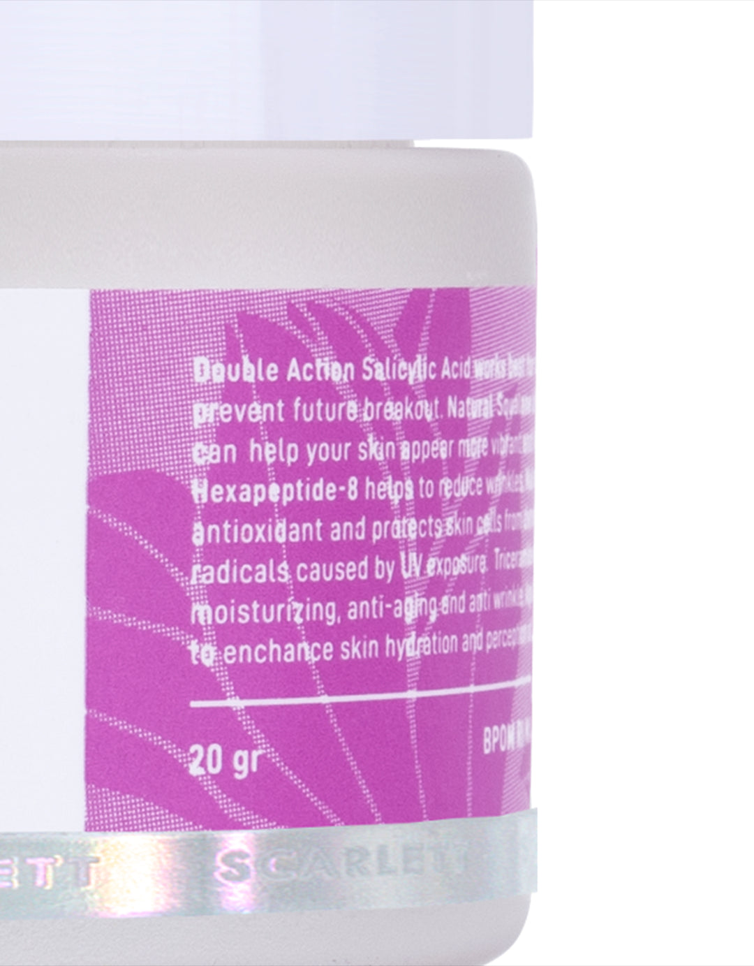 Acne Day Cream contains Double Action Salicylic Acid, Natural Squalane, Hexapeptide-8, Natural Vit-C, Triceramide and Aqua Peptide Glow.