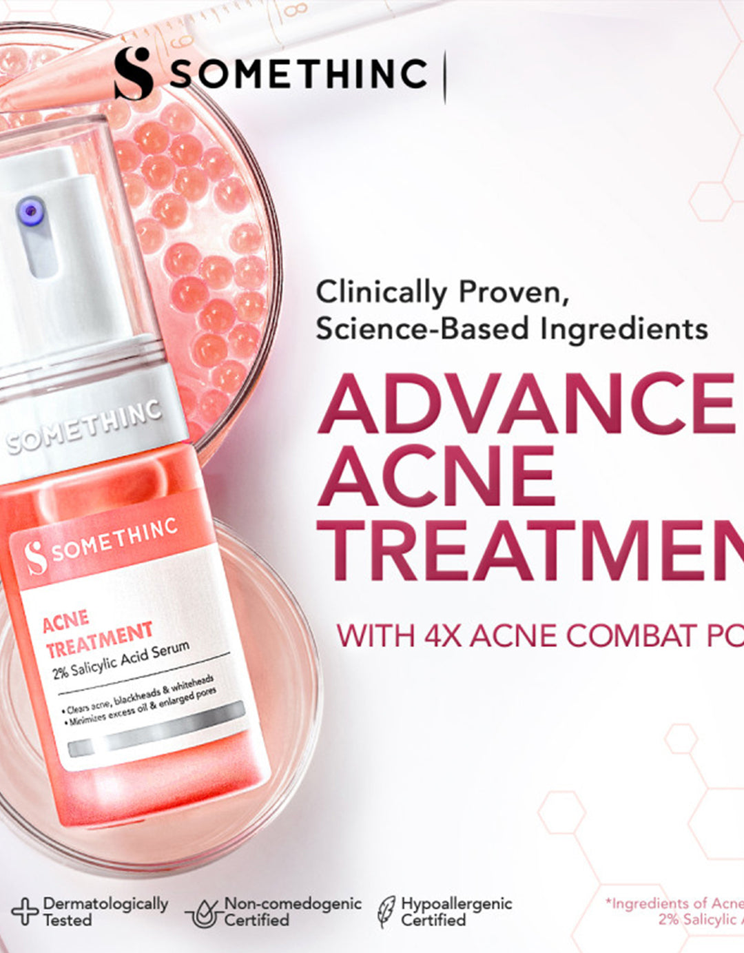Vegan Gentle Salicylic Acid Serum Somethinc dengan 4X Acne Combat untuk membantu mengurangi jerawat & komedo sekaligus mencegah terbentuknya jerawat baru. Diformulasikan dengan Salicylic Acid yang lebih gentle untuk membersihkan pori tersumbat, mengangkat sel kulit mati, & melawan bakteri penyebab jerawat; Hydrolyzed Algin & Zinc Sulfate untuk mengurangi sebum berlebih; & Poria Cocos yang menenangkan kemerahan sekaligus memperbaiki barrier kulit. Nyaman digunakan sehari-hari, tidak lengket, cocok untuk kulit berminyak & cenderung berjerawat, sehingga cocok sebagai serum untuk kulit berjerawat.