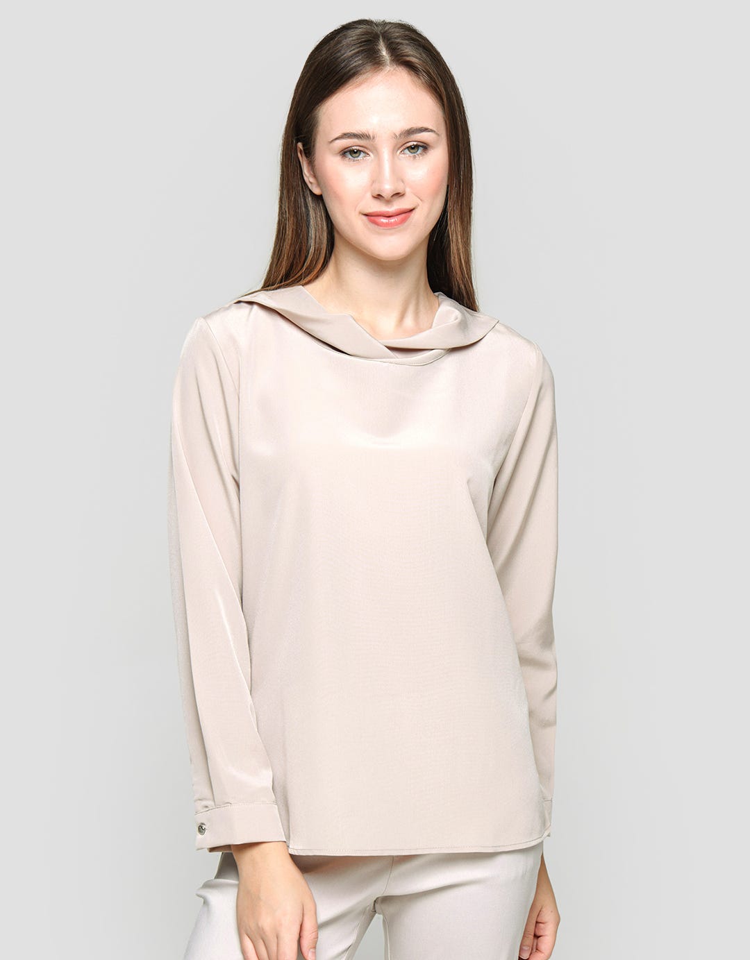 St. Yves Long Sleeve Blouse Polyester With Shawl Neck