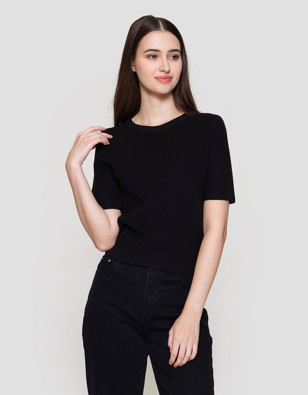 St. Yves Ribbed Knitted Kaos Crop Wanita