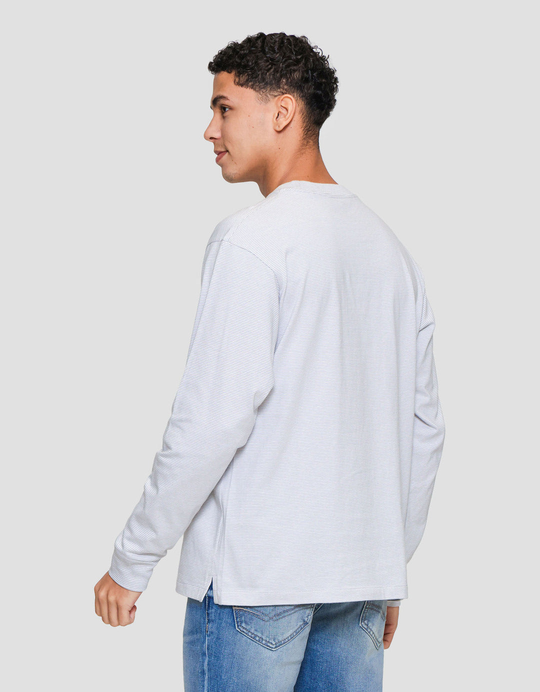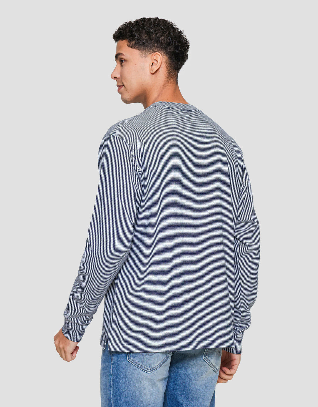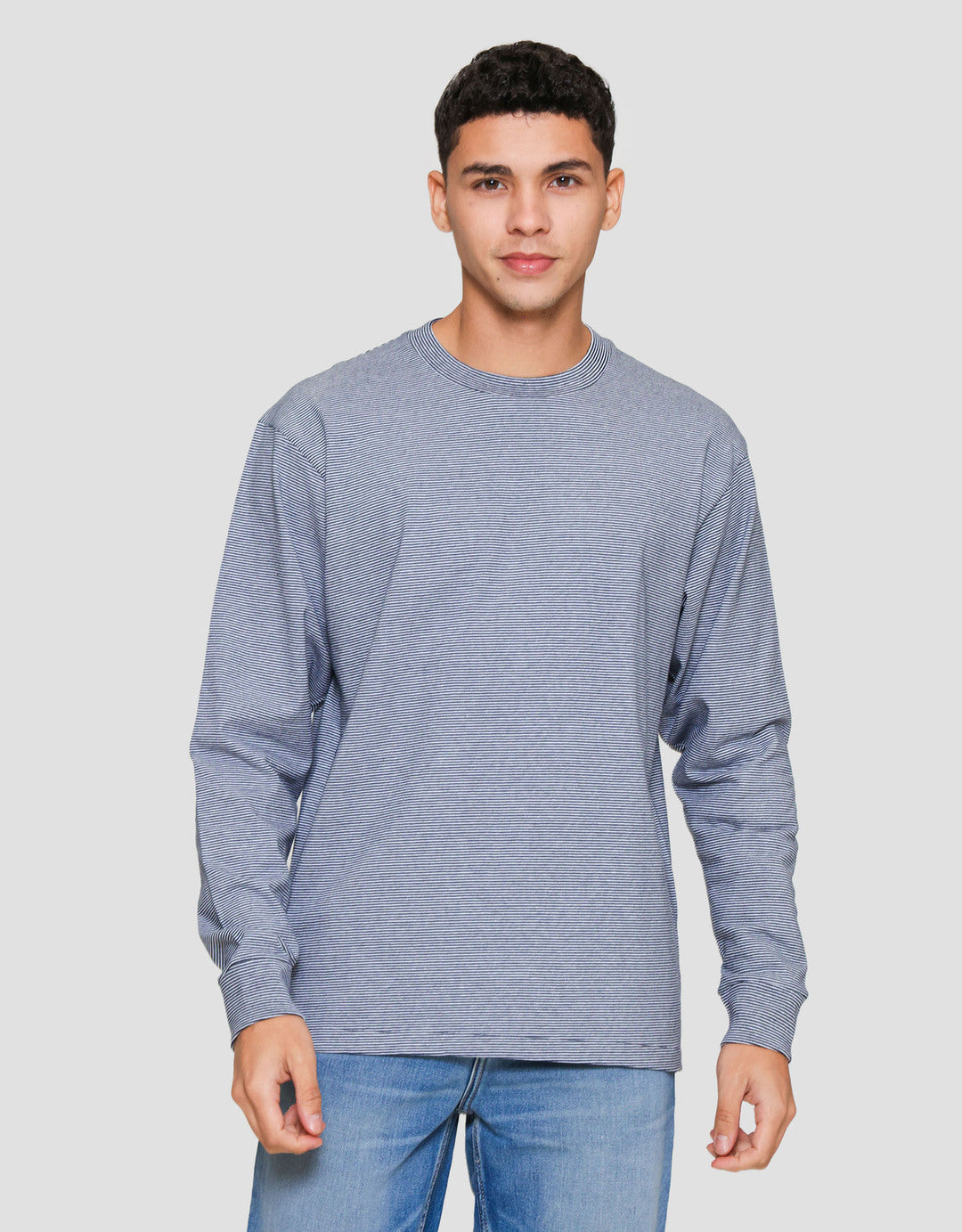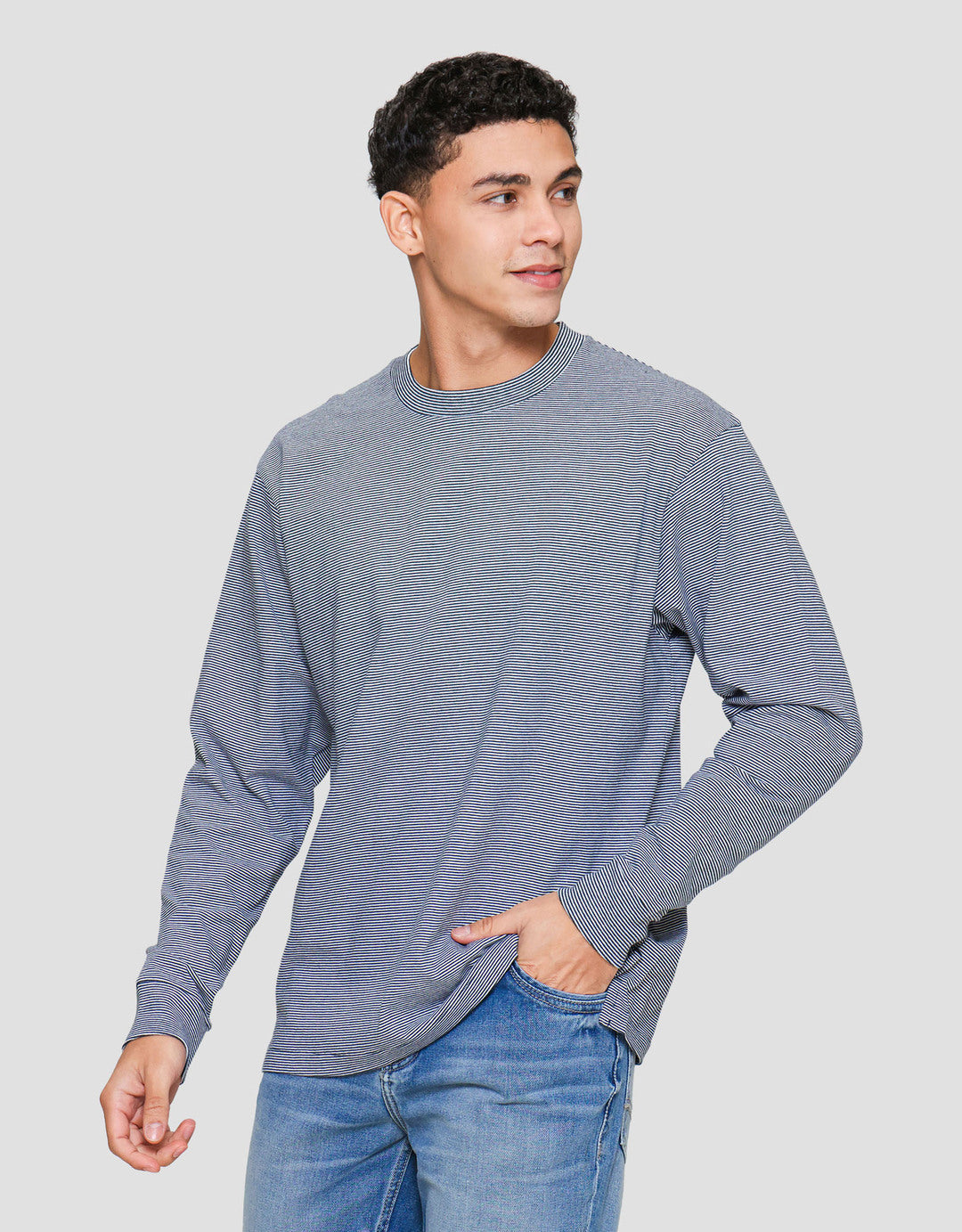 Suko Garis Kerah Bulat Kaos Lengan Panjang Pria