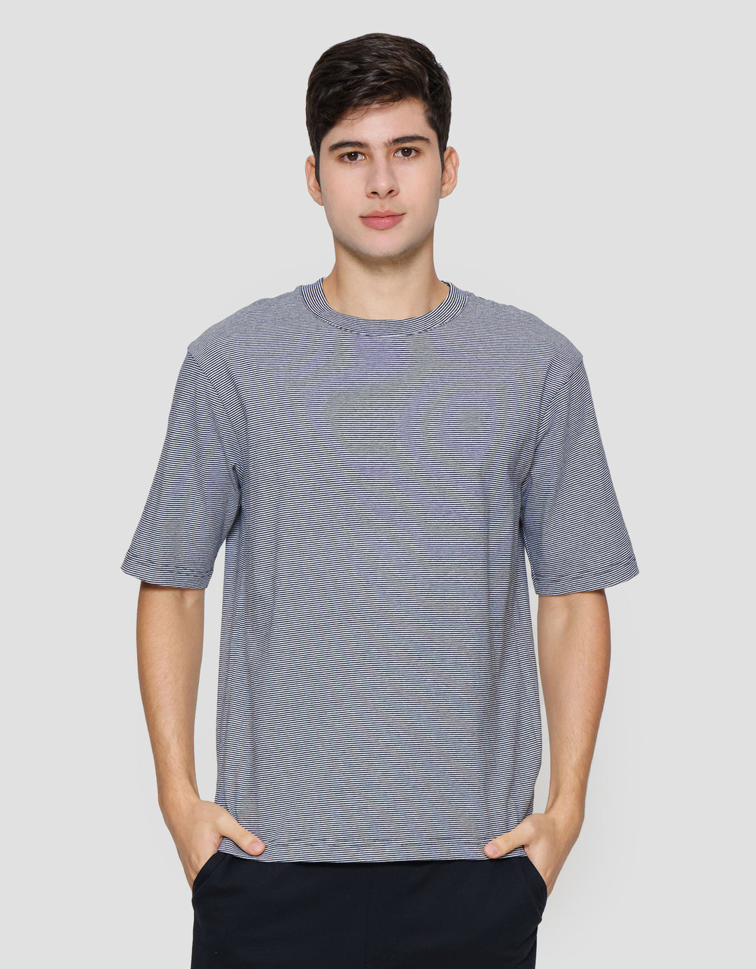 Suko Oversized Round Collar Stripe Men's Short Sleeve T-Shirt