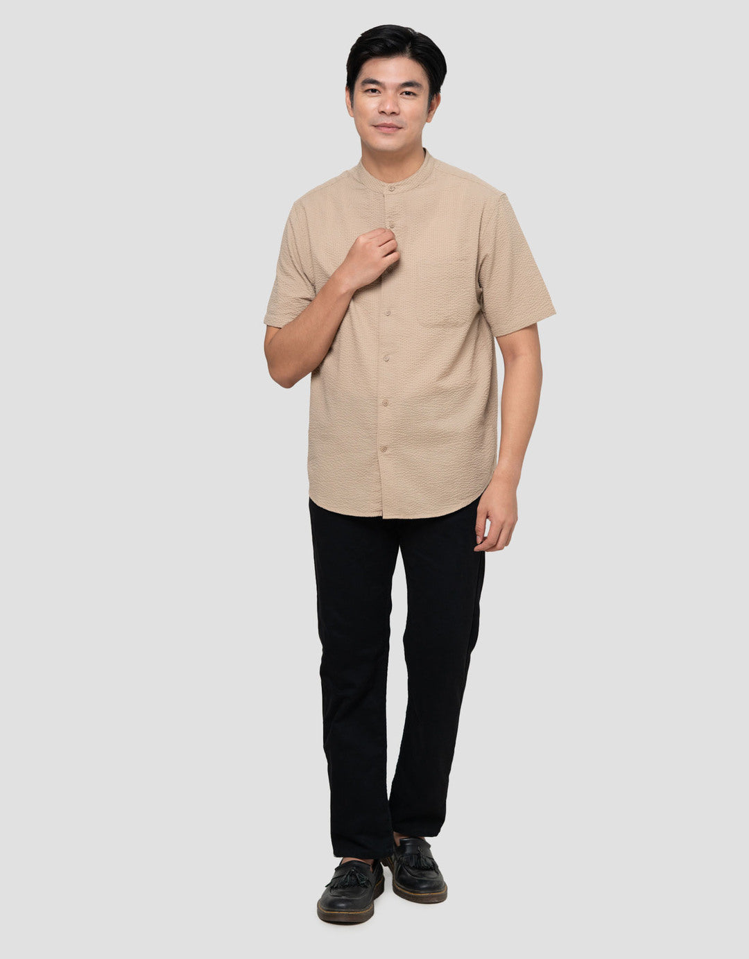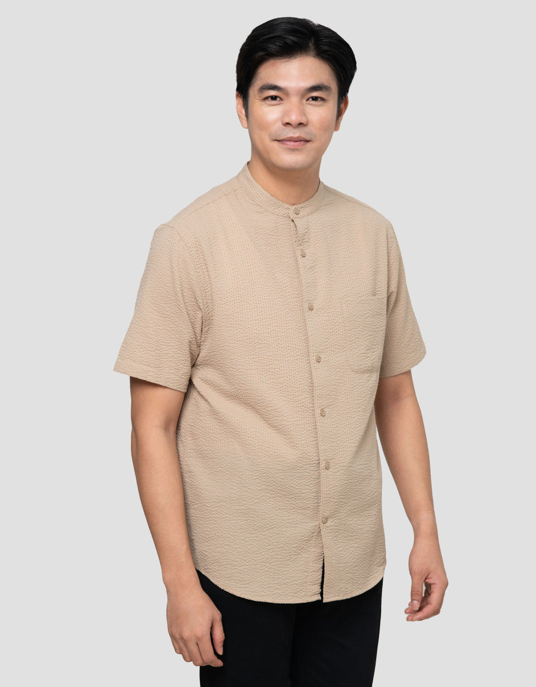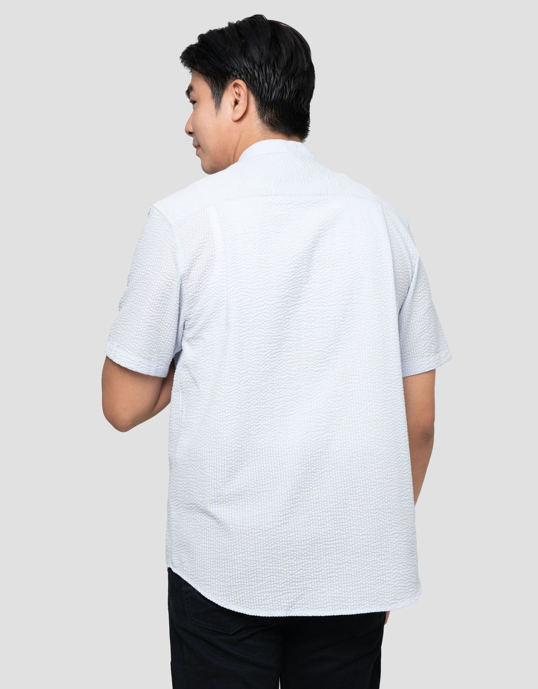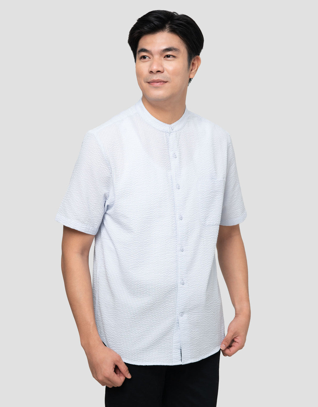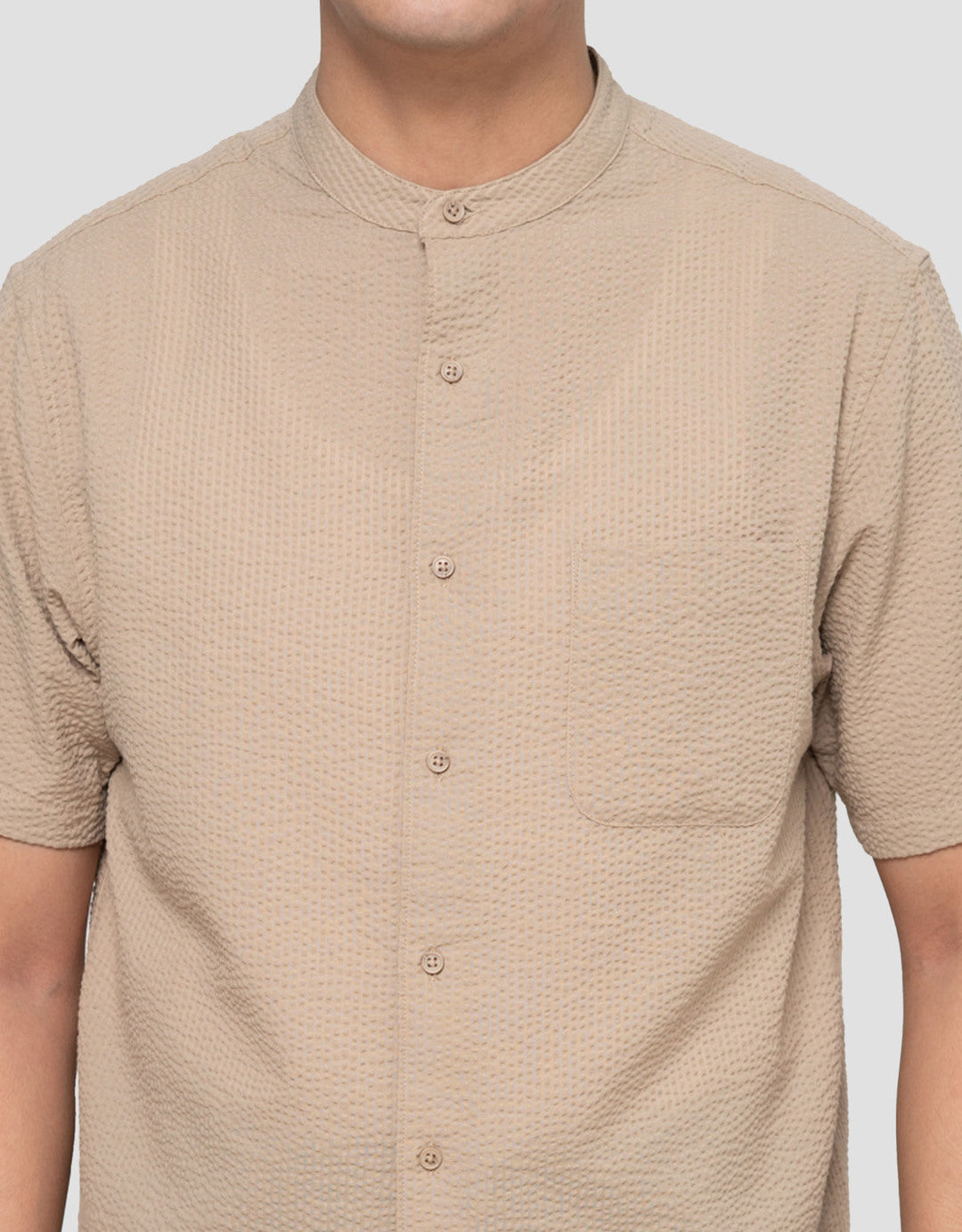 Suko Seersucker Kerah Tegak Kemeja Koko Pria