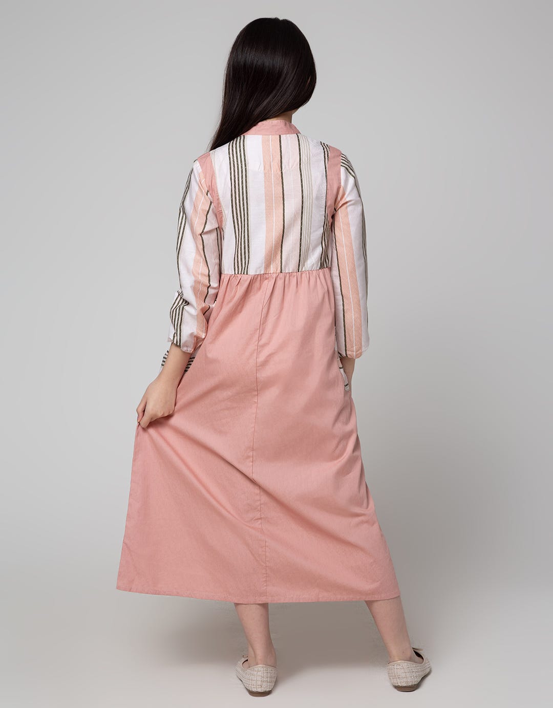 Sweet Miss Long Sleeve Maxi Dress Lebaran Koko Collar Body Half Line