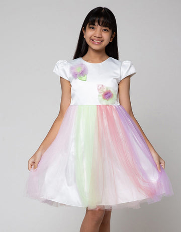 Sweet Miss Short Sleeve Midi Dress Flower Tile Leaves Rainbow Skirt