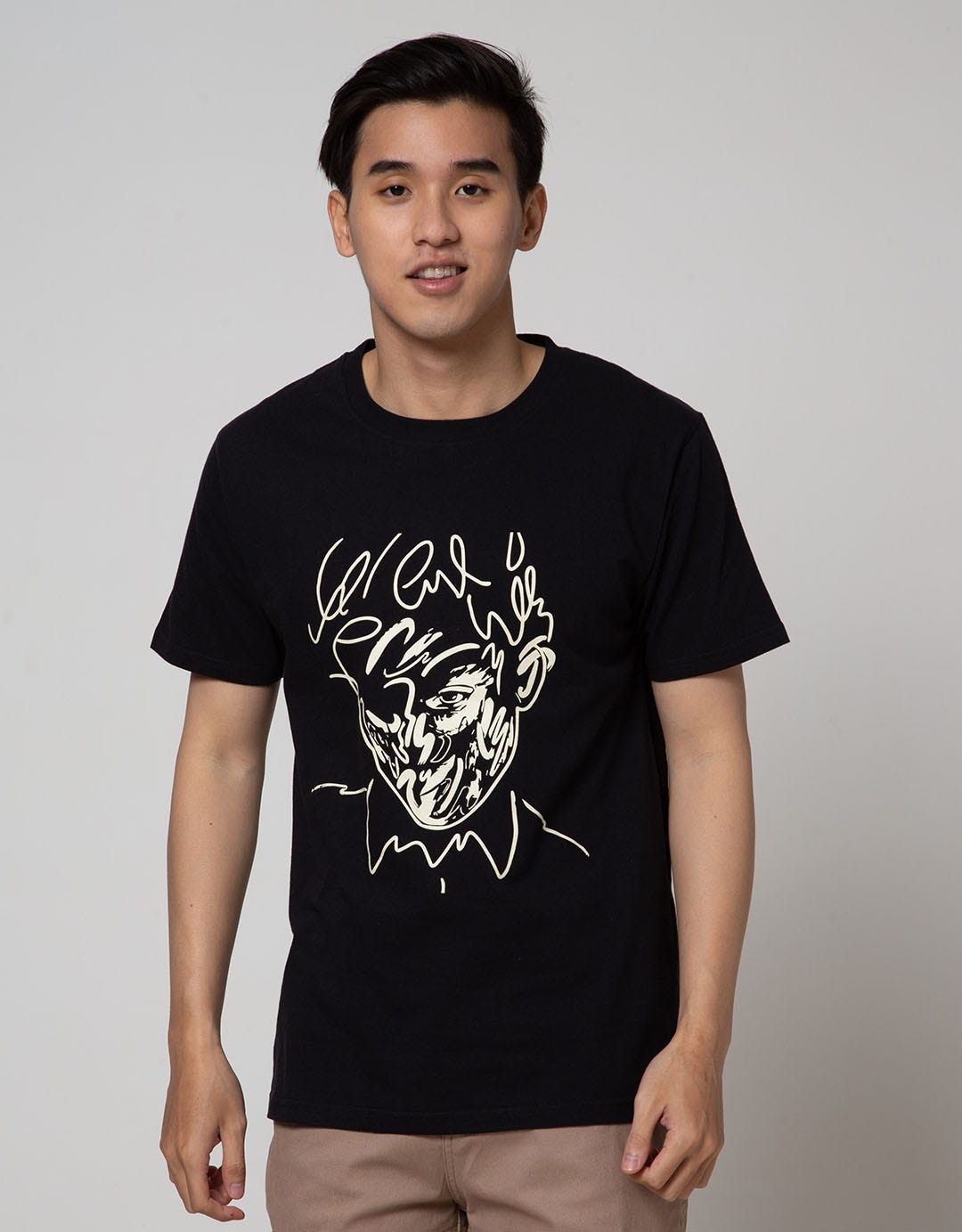 T Zone Short Sleeve T-Shirt Print Theme Line Art - Face