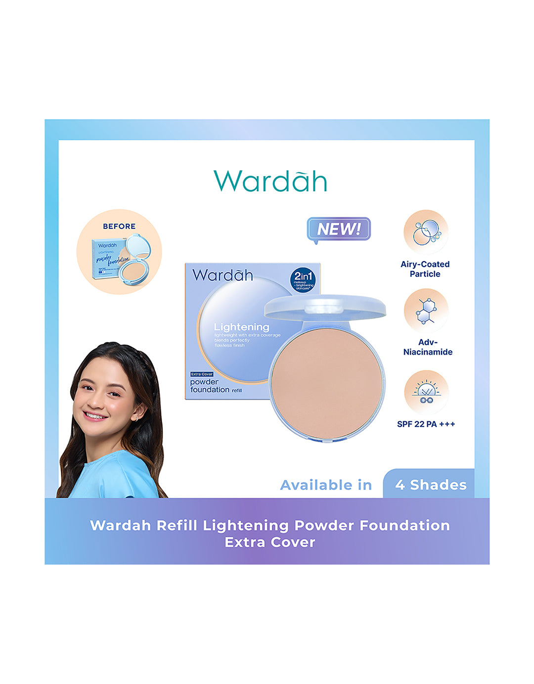 Wardah Refill Lightening Powder Foundation Light Feel 04 Neutral Sand (42N) 12 g New