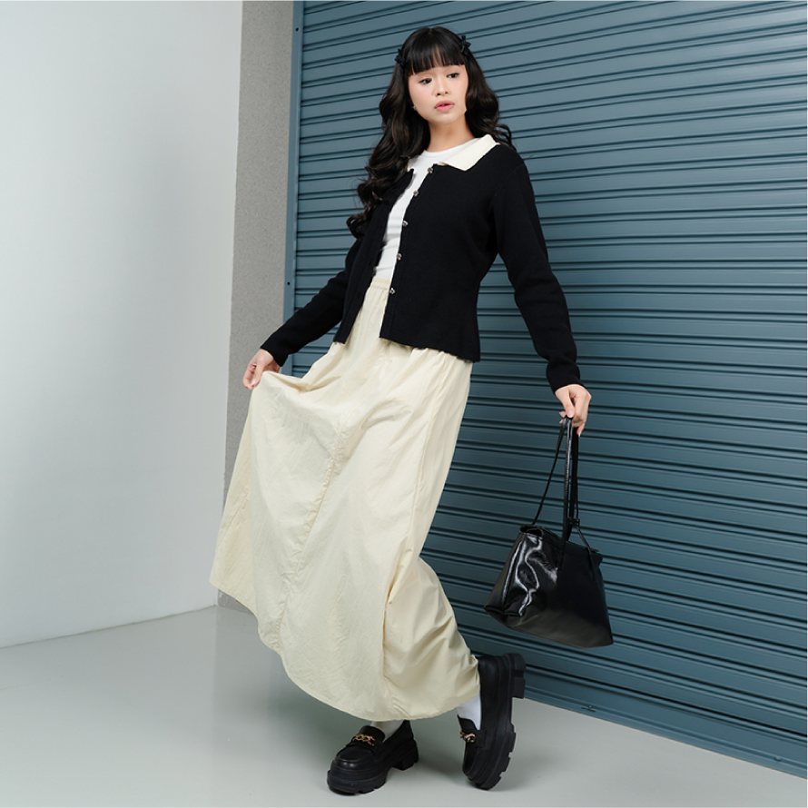 Perpaduan atasan dan bawahan dengan potongan longgar dengan siluet clean dan bahan yang jatuh dan memberikan kesan rapi. Nyaman dipakai seharian, terasa ringan, dan siap menemani setiap momen harimu.