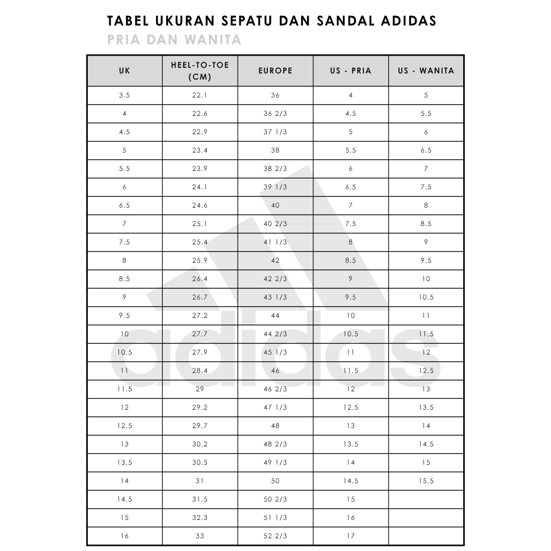 Size Chart UK/EURO ( Panjang )