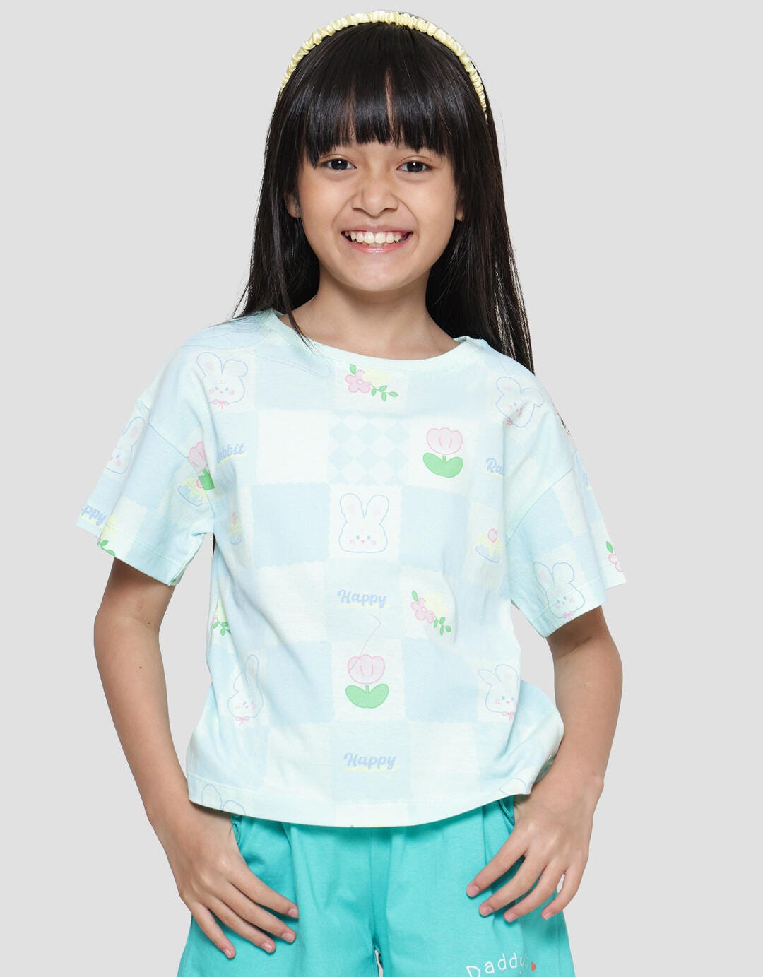 Aero Rabbit Kotak Print Kaos Lengan Pendek Anak Perempuan