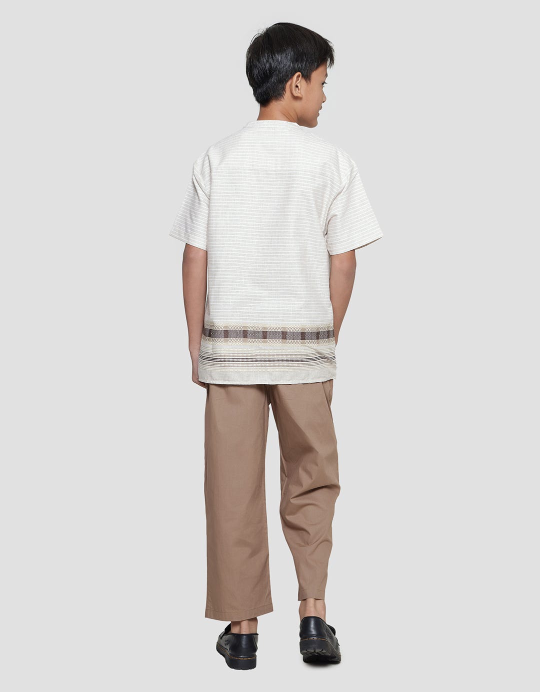 Set pakaian muslim anak dengan design casual, dapat digunakan sebagai outfit saat hari raya untuk menunjang penampilan anak menjadi lebih menawan. Bahan yang berkualitas akan nyaman saat digunakan sepanjang hari.