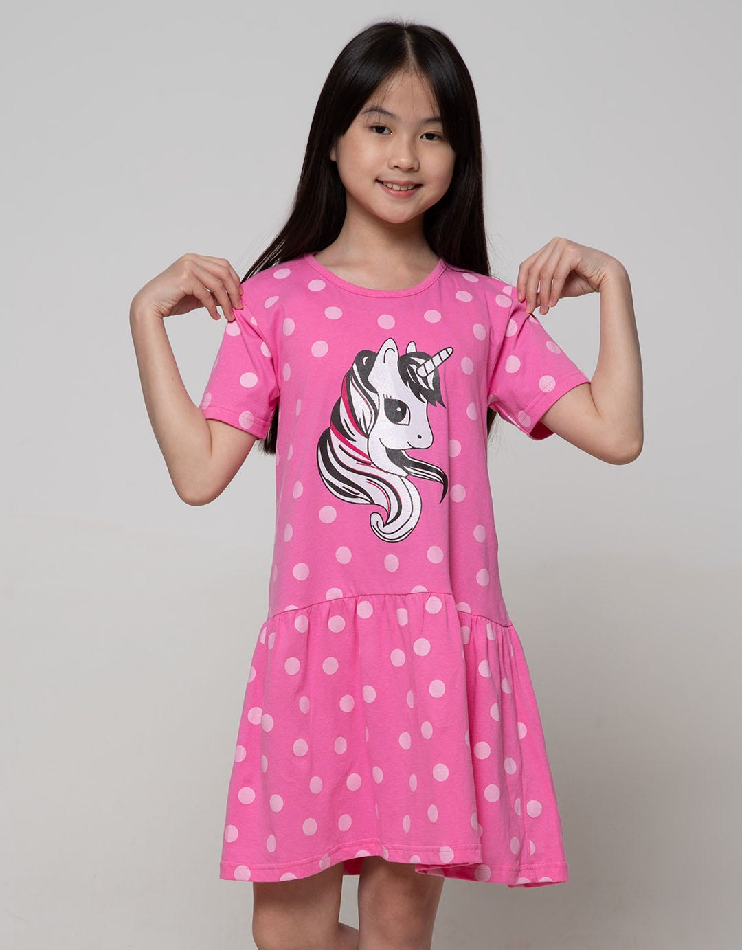 Aero Short Sleeve Midi Dress Daily Unicorn Polkadot