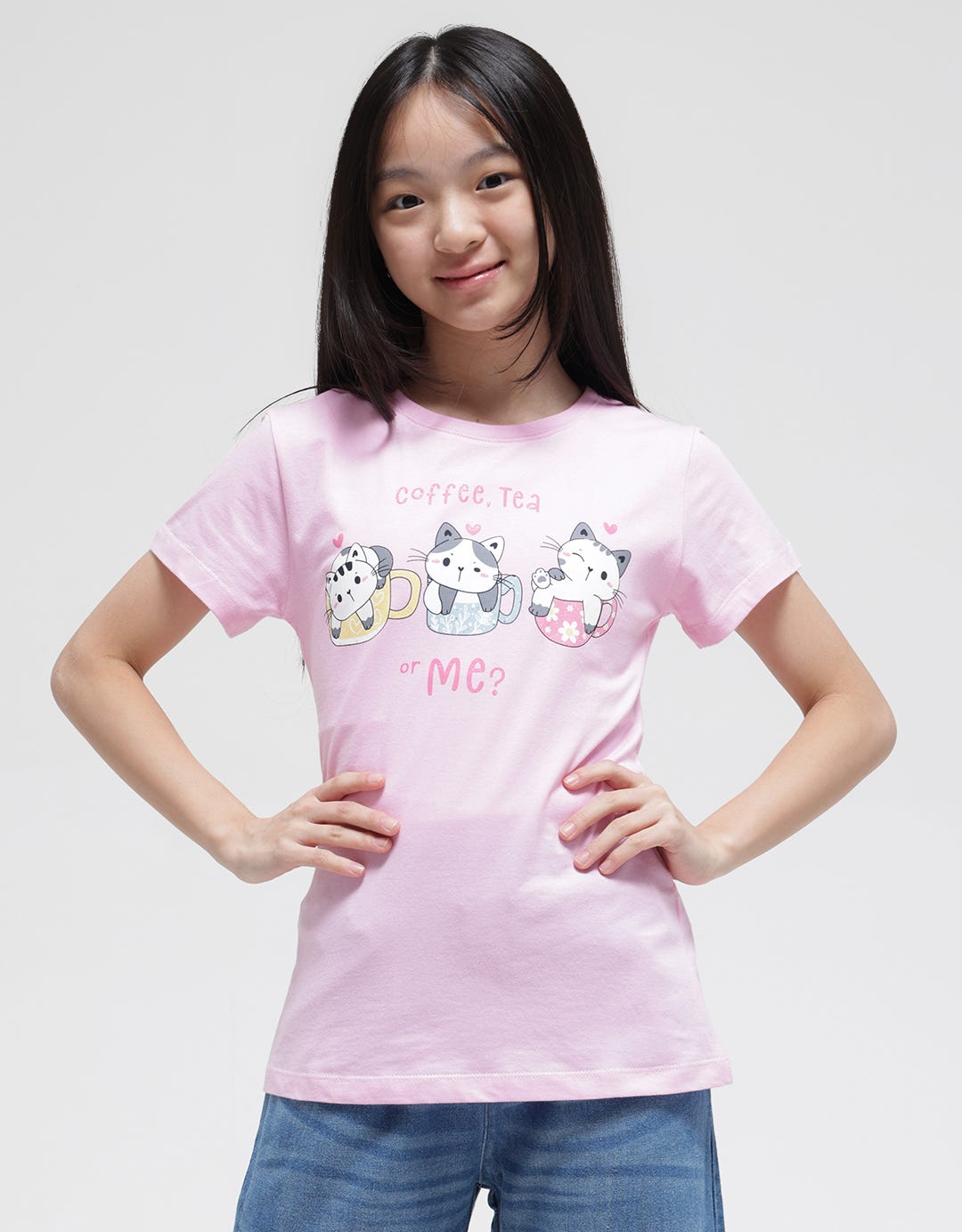 Aero Short Sleeve T-Shirt Print Cat Cup Tea