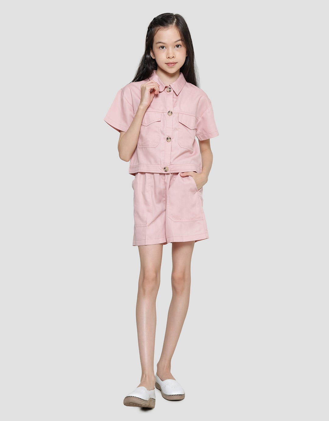 Aero Woven Kerah Kantong Baju Set Anak Perempuan