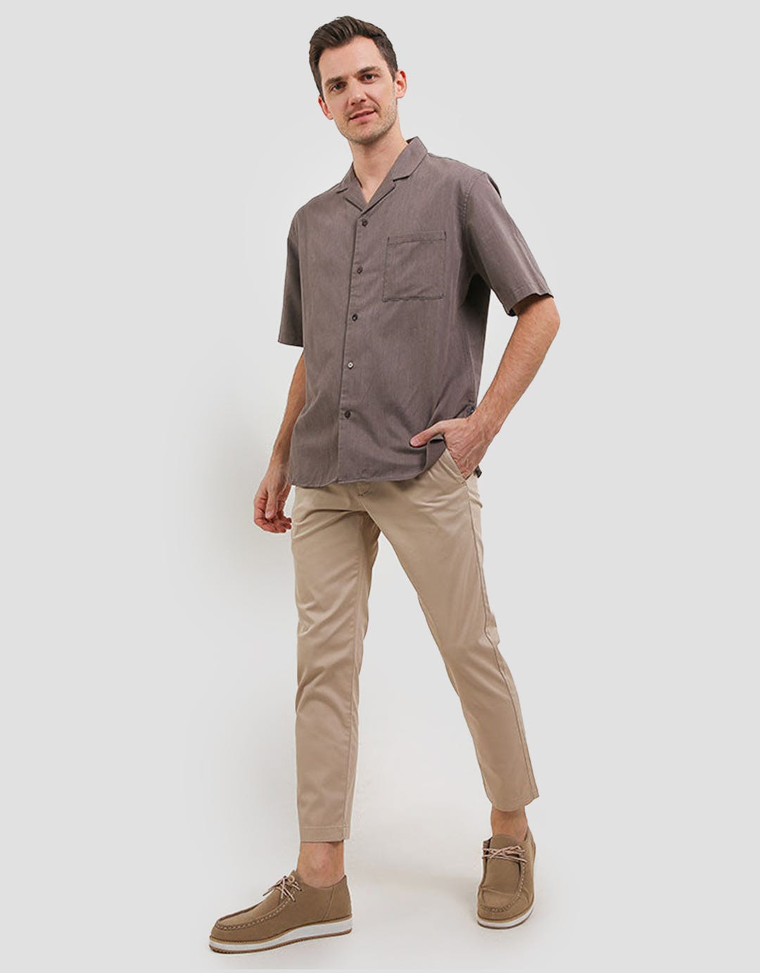 Celana chinos untuk pria dengan model yang formal dan simple, cocok untuk dijadikan outfit keseharian saat beraktifitas. Bahan yang berkualitas akan nyaman saat digunakan sepanjang hari.