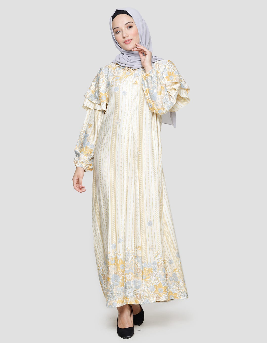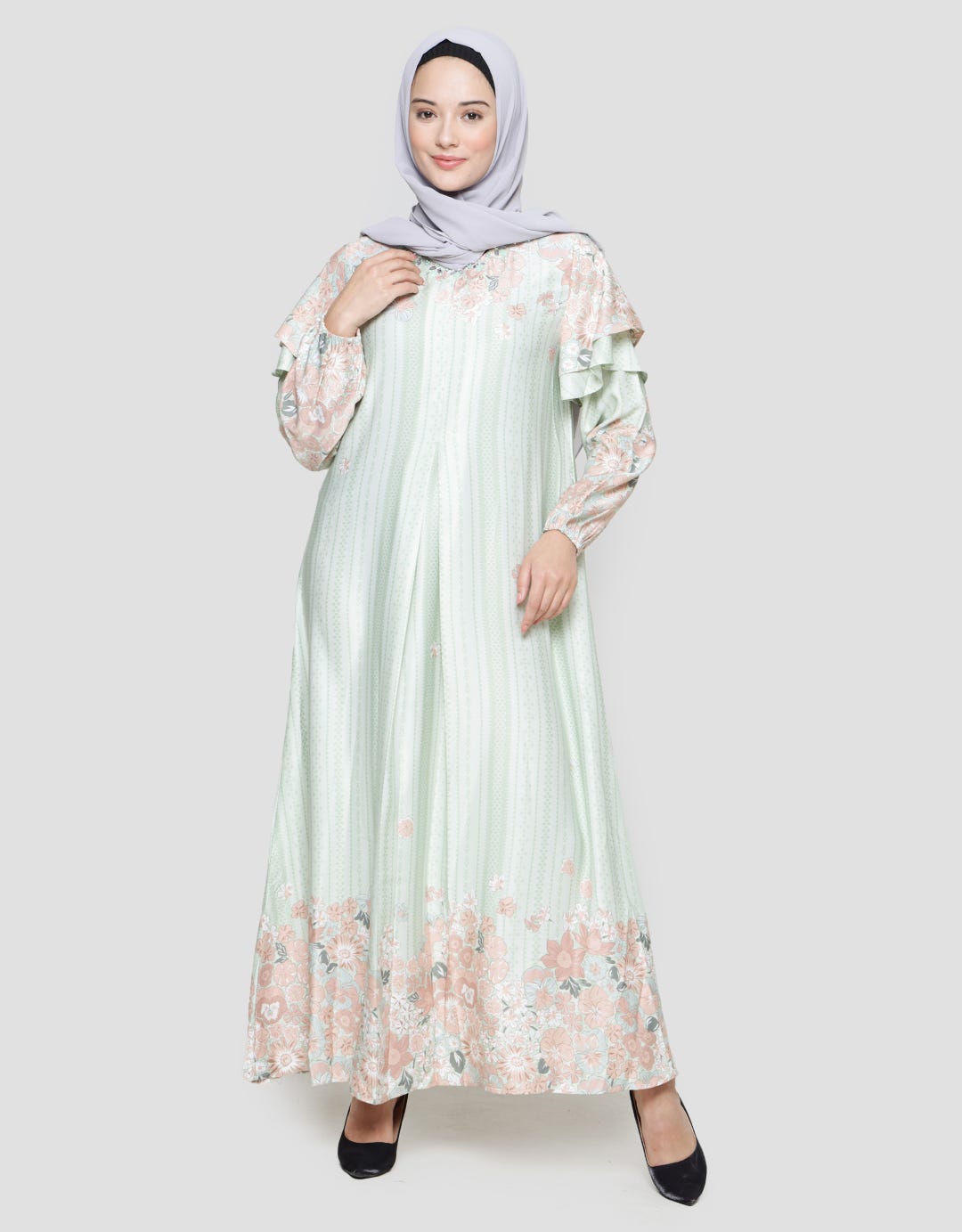 Annisa Gamis Wanita Print Flower Bottom Hem Satin